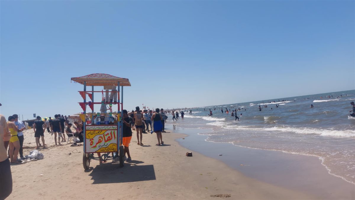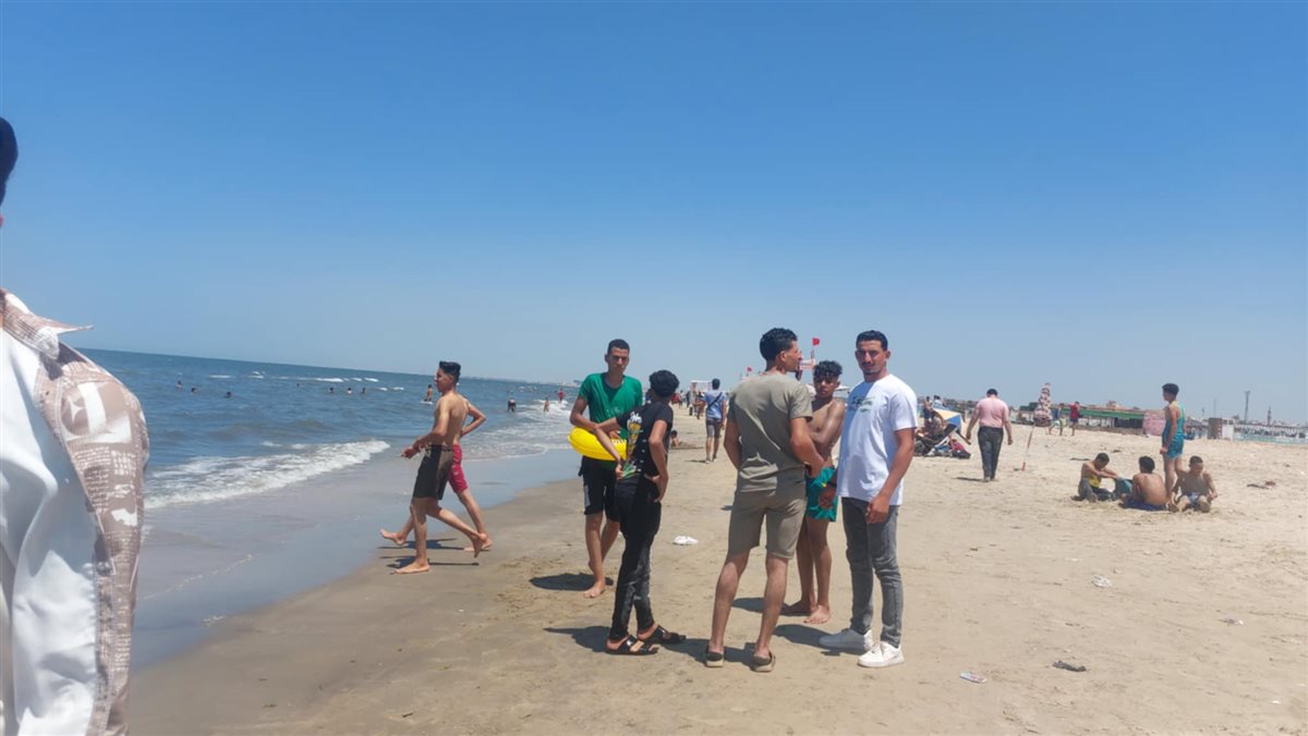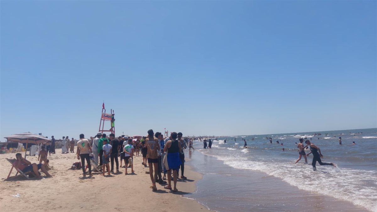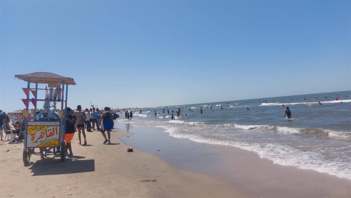 إقبال أهالي الدقهلية على شاطئ جمصة في أول أيام عيد الأضحى (فيديو وصور)