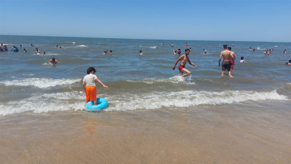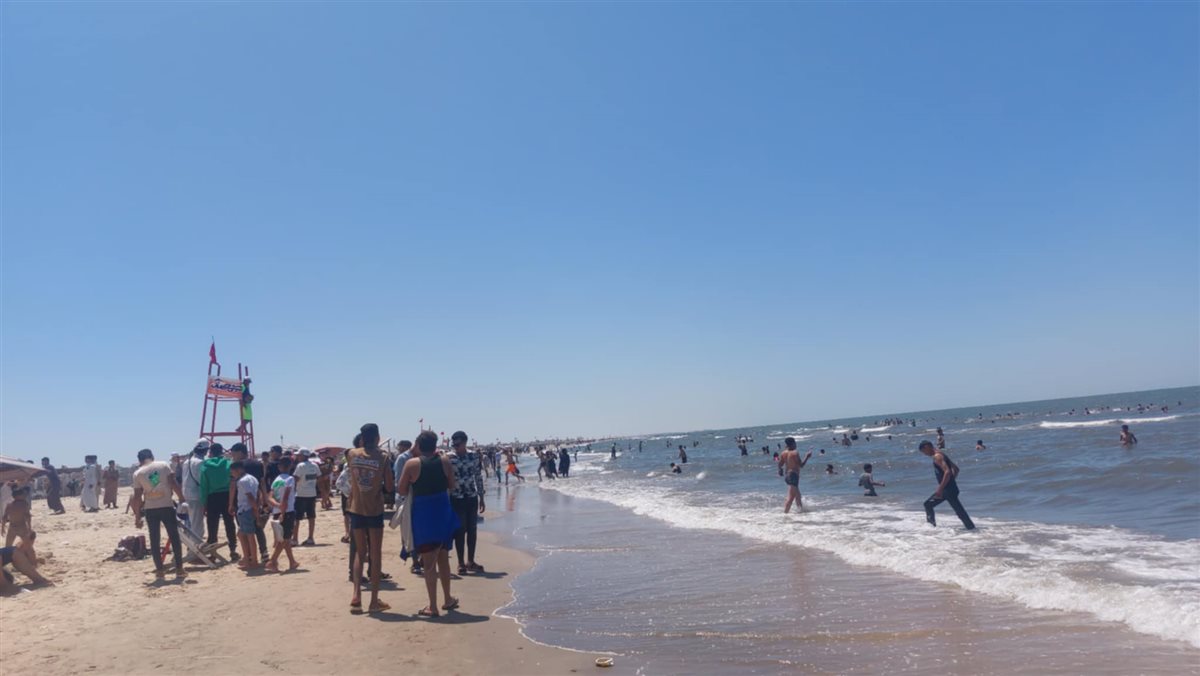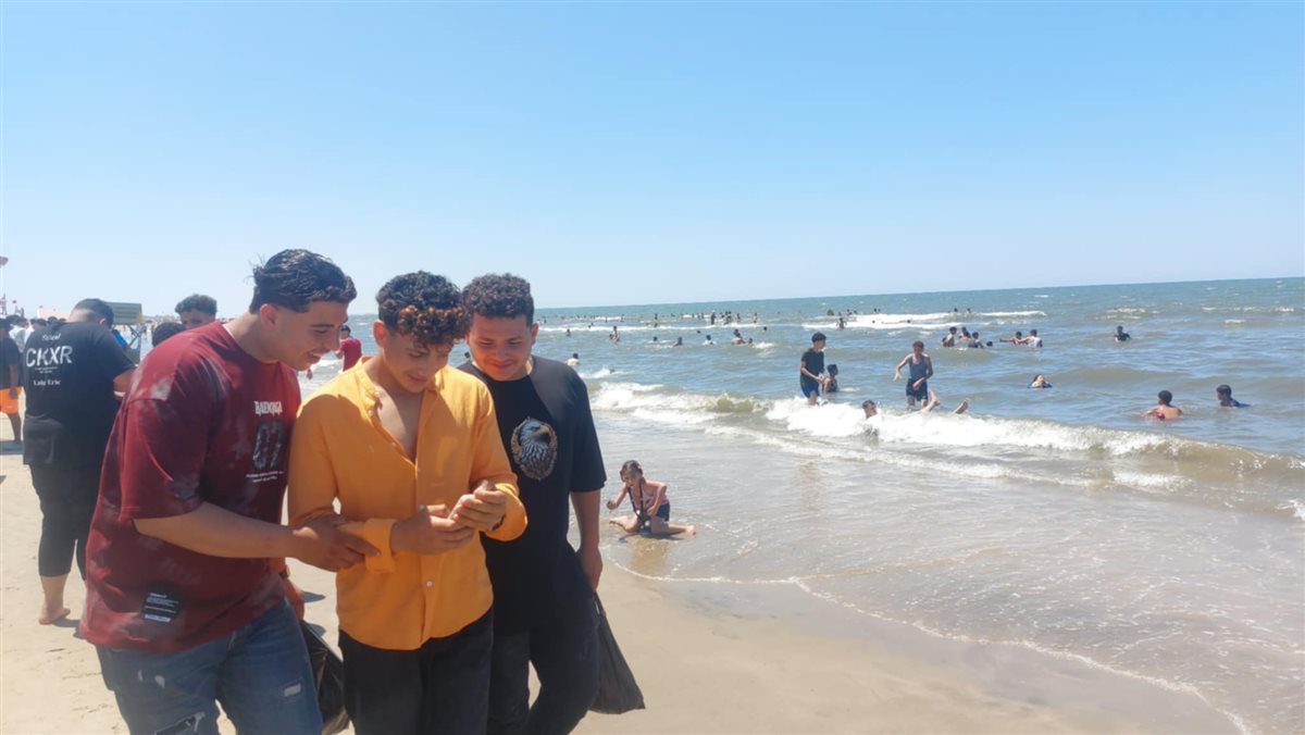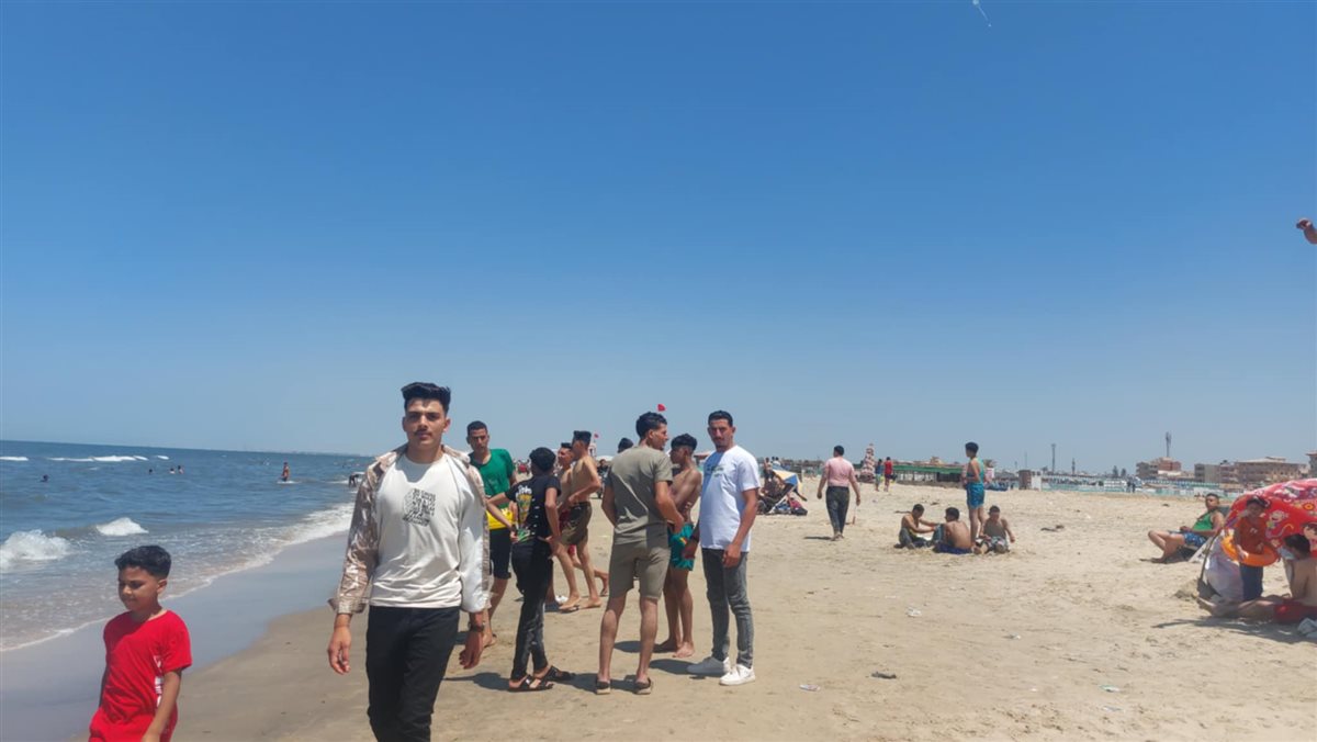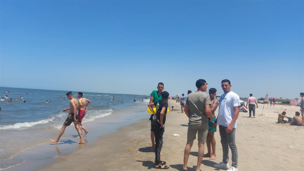 إقبال أهالي الدقهلية على شاطئ جمصة في أول أيام عيد الأضحى (فيديو وصور)