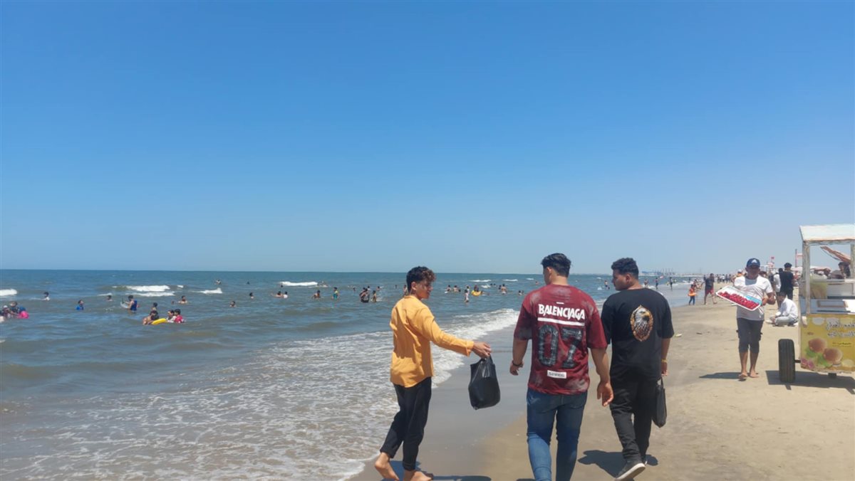ورصدت فيتو إقبال المواطنين على كورنيش وشاطئ مدينة جمصة أول أيام العيد.