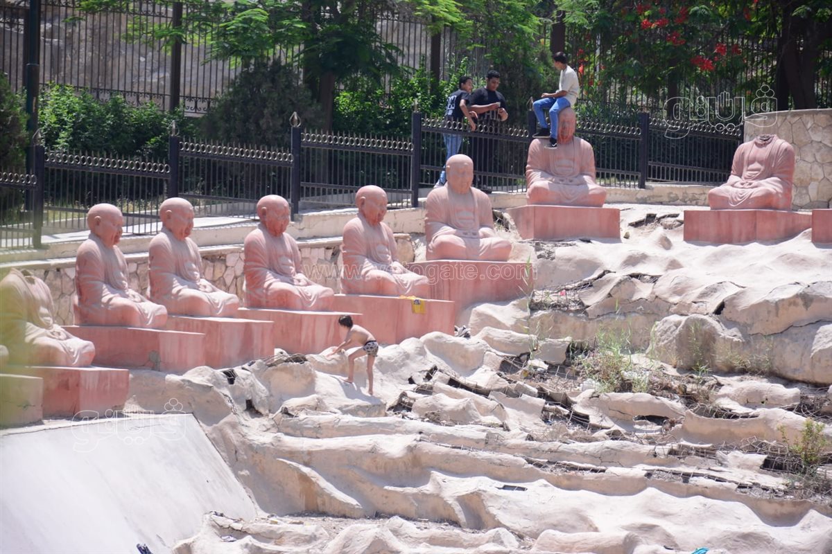 قرر أحد الأطفال في الحديقة اليابانية القفز ببحيرة الحديقة هربًا من الحر في أول أيام عيد الأضحى المبارك.