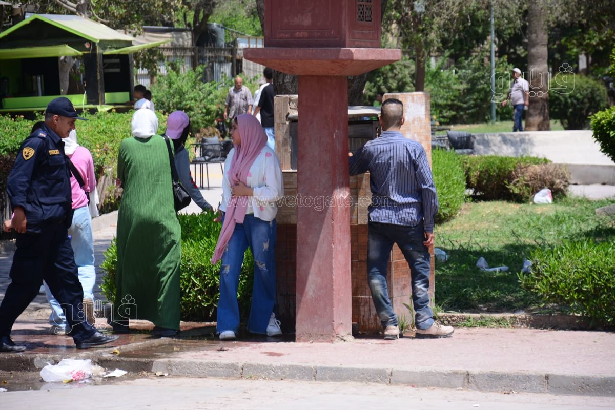 كما لجأ العديد من زوار الحديقة لطرق مختلفة لتفادي الحر والتغلب عليه فمنهم من قام بشرب المياه المثلجة والعصائر الطبيعية والاختباء تحت الأشجار والمظلات واللعب في البحيرة بقوارب البدال.
