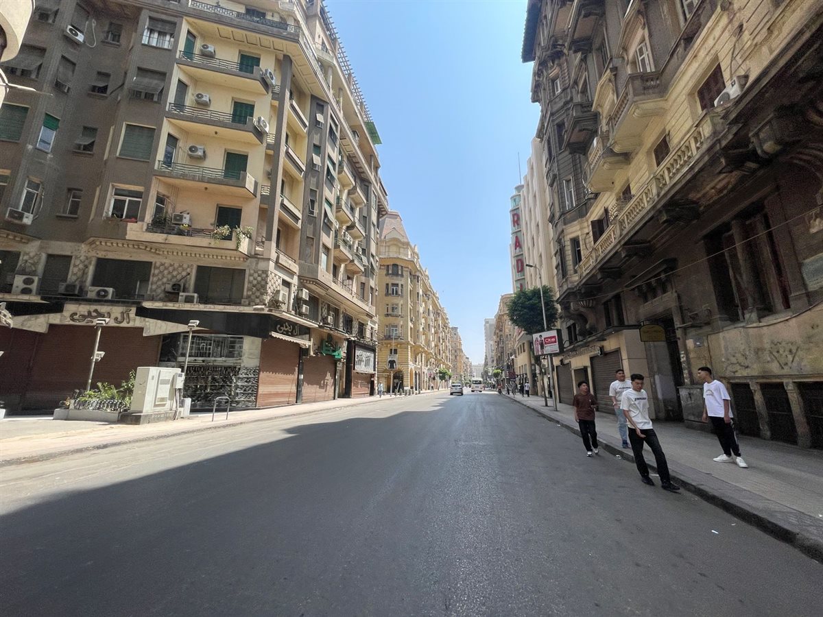 ظهرت شوارع وسط البلد بالقاهرة فارغة من المواطنين وذلك بسبب درجات الحرارة المرتفعة التي أدت إلى هروب المواطنين من الشوارع.