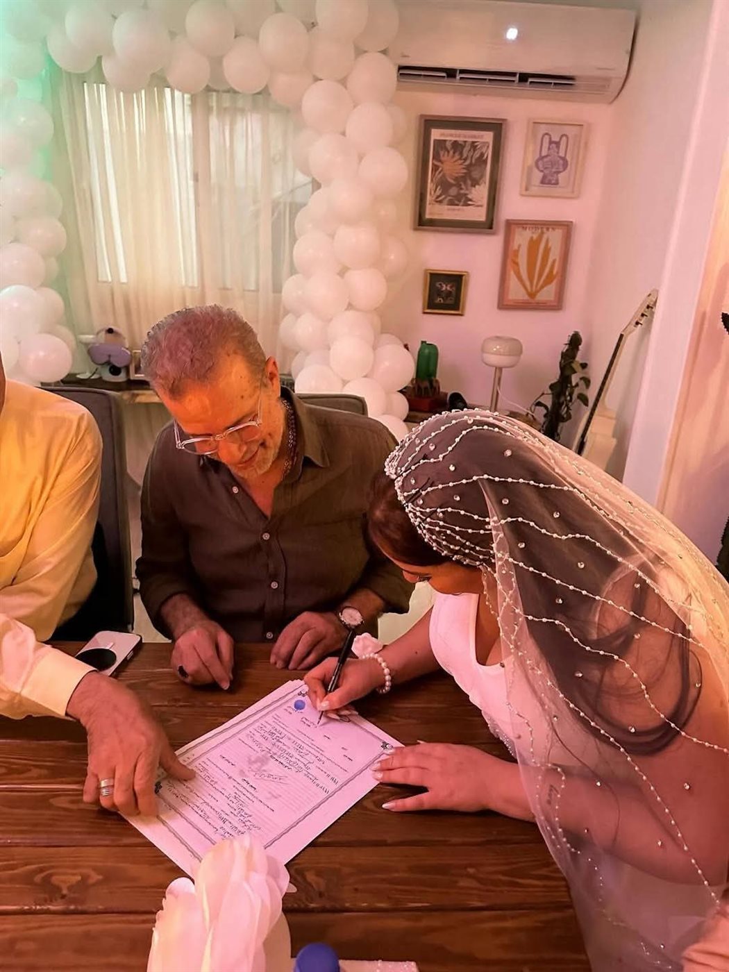 وتم عقد القران في أول أيام عيد الفطر، في جو عائلي اقتصر على عدد محدود جدًّا من المقربين.