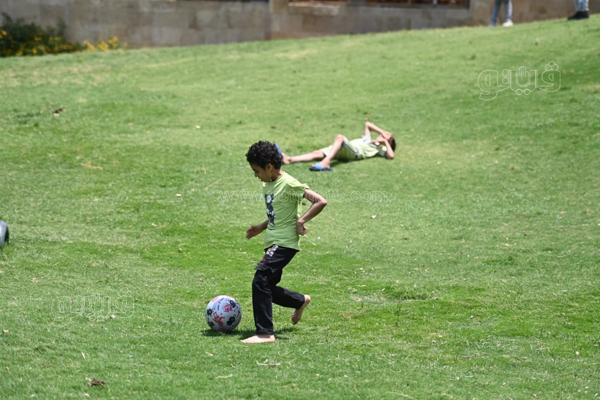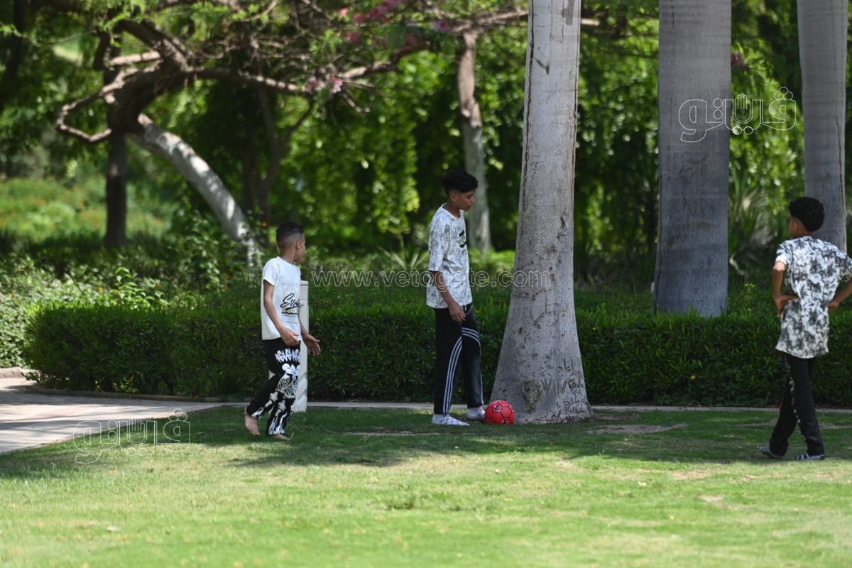 الأطفال يلعبون الكرة داخل حديقة الأزهر احتفالا بثاني أيام العيد (صور)