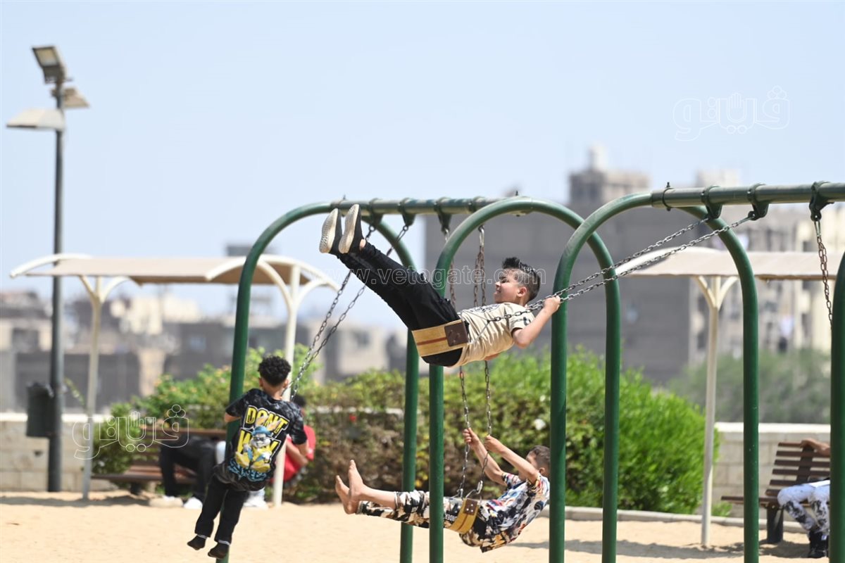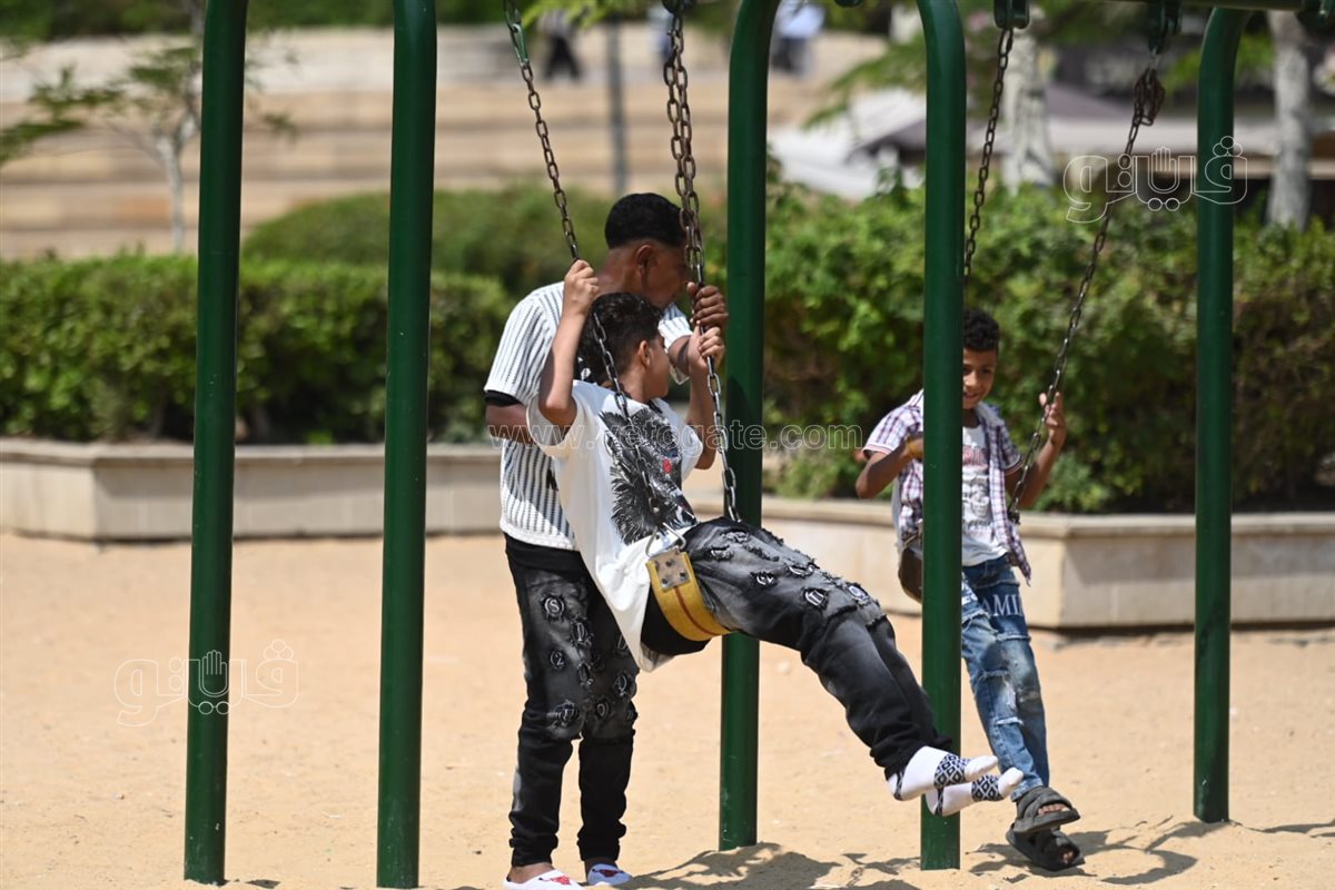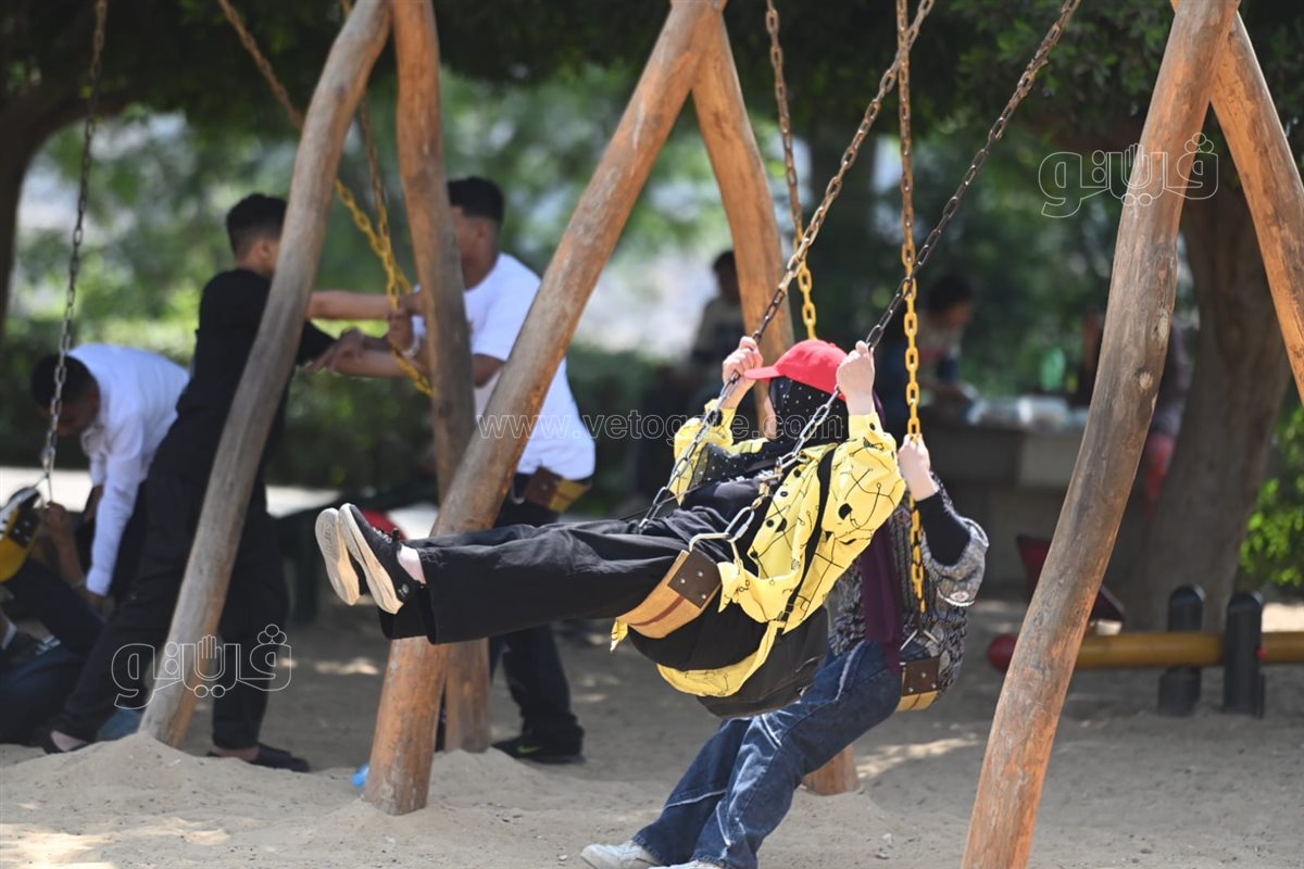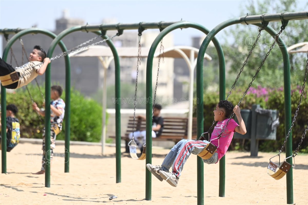 واستطاعت عدسة “فيتو” التقاط لحظات الفرحة والسعادة على وجوه الأطفال والشباب أثناء لعبهم كرة القدم بالقرب من النافورة المائية، بينما اختار البعض الآخر ركوب الملاهي المختلفة مع الأصدقاء أو العائلة.