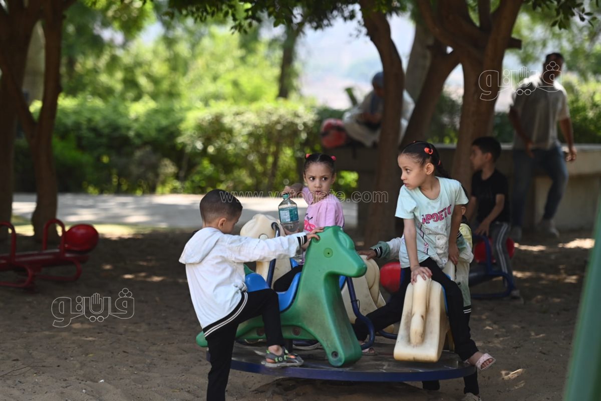 احتفل الأطفال بثاني أيام عيد الأضحى في حديقة الأزهر بطرق مختلفة، فبالرغم من ارتفاع درجات الحرارة إلا أن ذلك لم يمنع العائلات والأطفال من الاستمتاع بأجواء العيد.