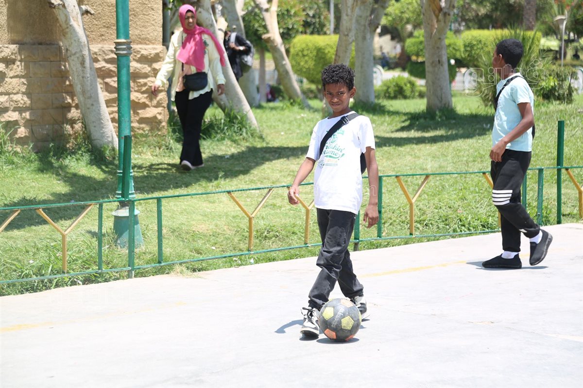 والتقطت عدسة “فيتو” لعب الأطفال داخل الحديقة الدولية سواء بكرة القدم وسط ممرات الحديقة وبين المساحات الخضراء بداخلها أو ركوب البدالات المائية لمواجهة الطقس الحار.