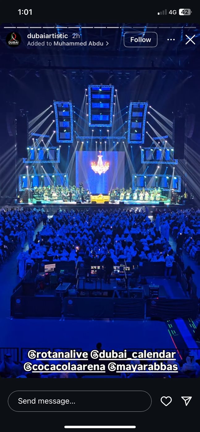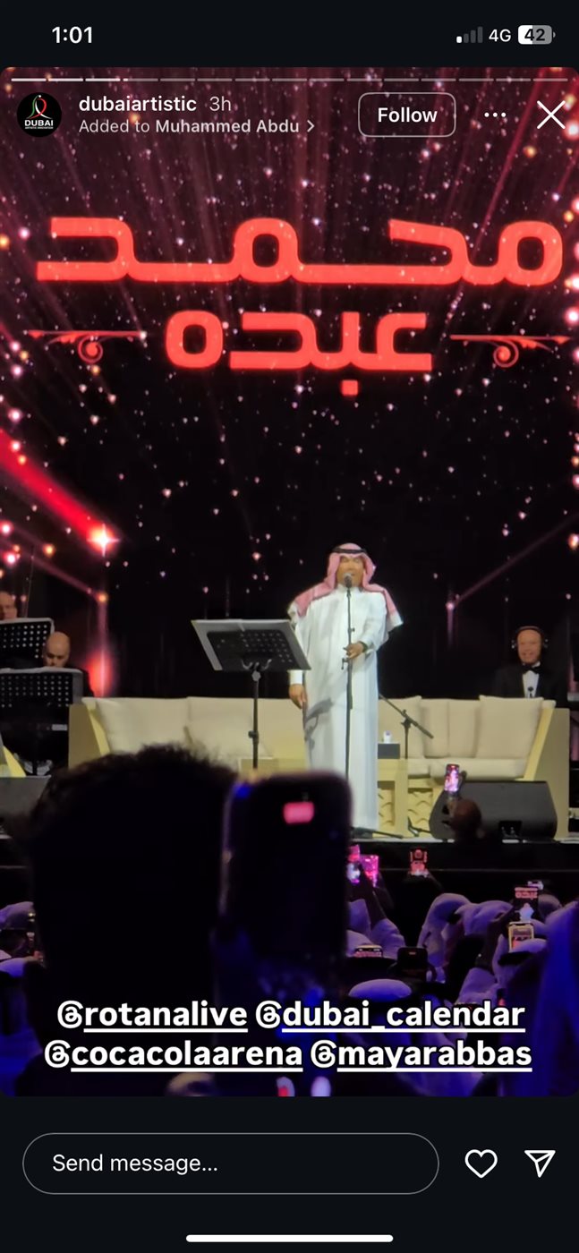 أحيا فنان العرب محمد عبده حفلًا غنائيًّا، أمس السبت، ثاني أيام العيد الأضحى المبارك في دبي على مسرح أرينا وسط حضور رفع شعار كامل العدد.
