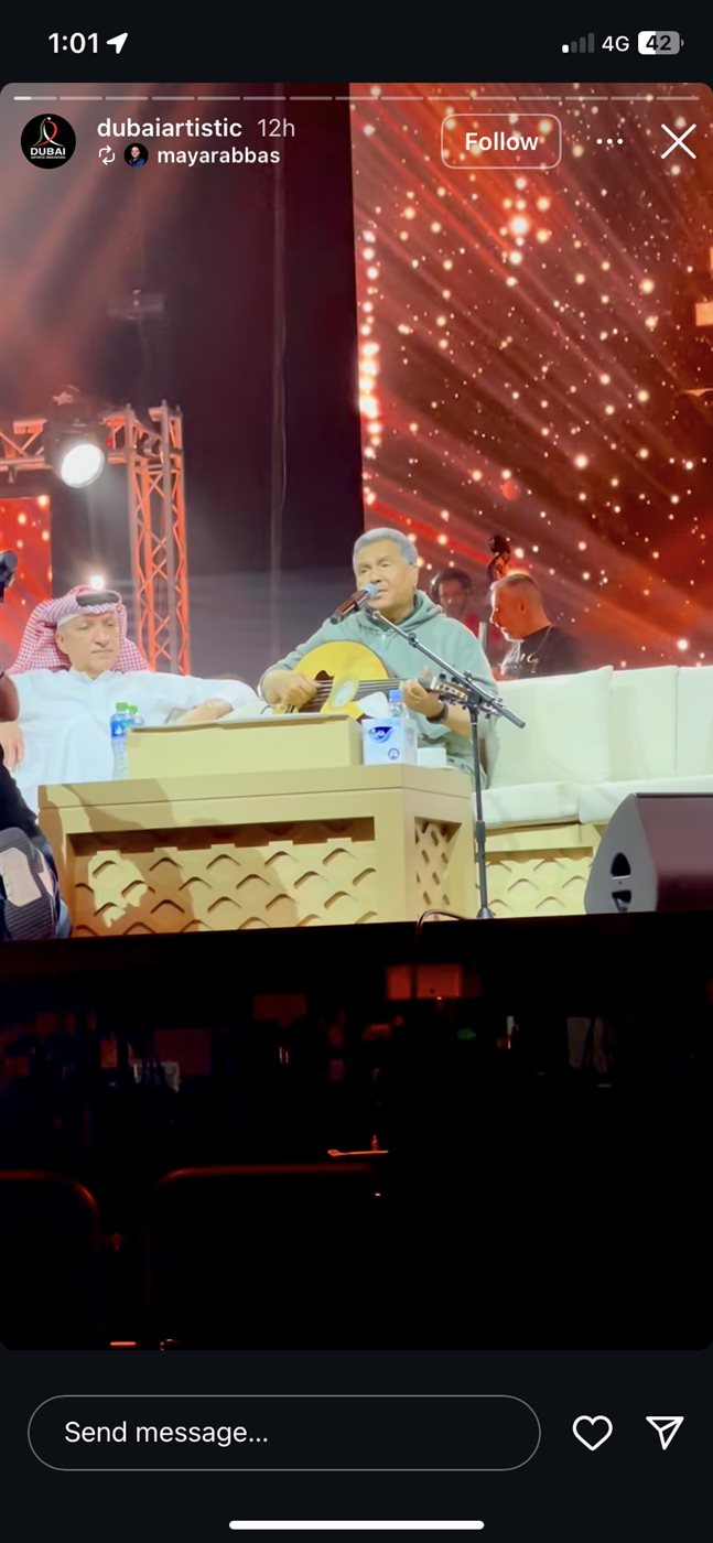 وأشار إلى أن حفل فنان العرب في دبي يتضمن مجموعة من أهم الأغنيات التي شكلت محطات بارزة في مشواره الفني الحافل بكلاسيكيات غنائية عديدة، لافتًا إلى أنه وفنان العرب سيجمعهما أكثر من حفل بينها حفل يقام يوم 9 يونيو الجاري ضمن سلسلة حفلات عيد الأضحى بمدينة الخبر السعودية في أول حفل يدشن أرينا الظهران إكسبو.