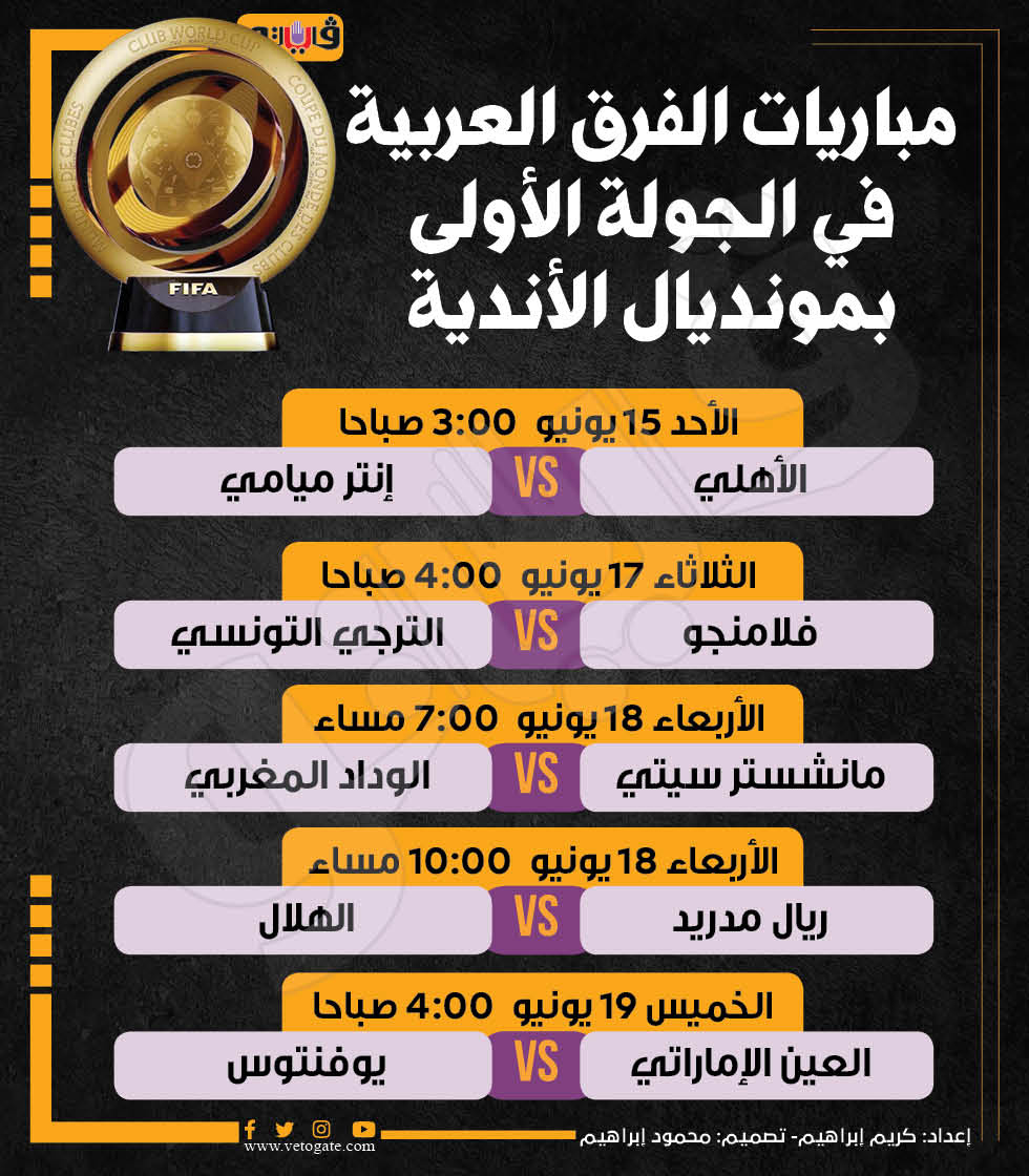 مباريات الفرق العربية في الجولة الأولى بمونديال الأندية (إنفوجراف)
