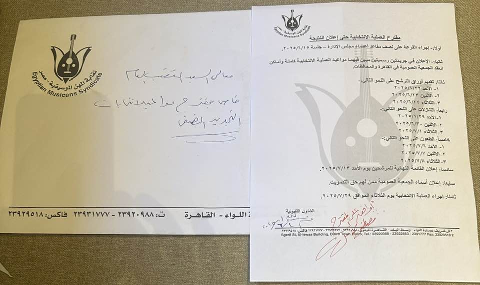 وفي السياق نفسه، كلّف نقيب الموسيقيين الشؤون القانونية بالتواصل مع الفنان أركان فؤاد لتمثيل الفنانة نادية مصطفى في جلسة القرعة، نظرًا لوجودها خارج البلاد.