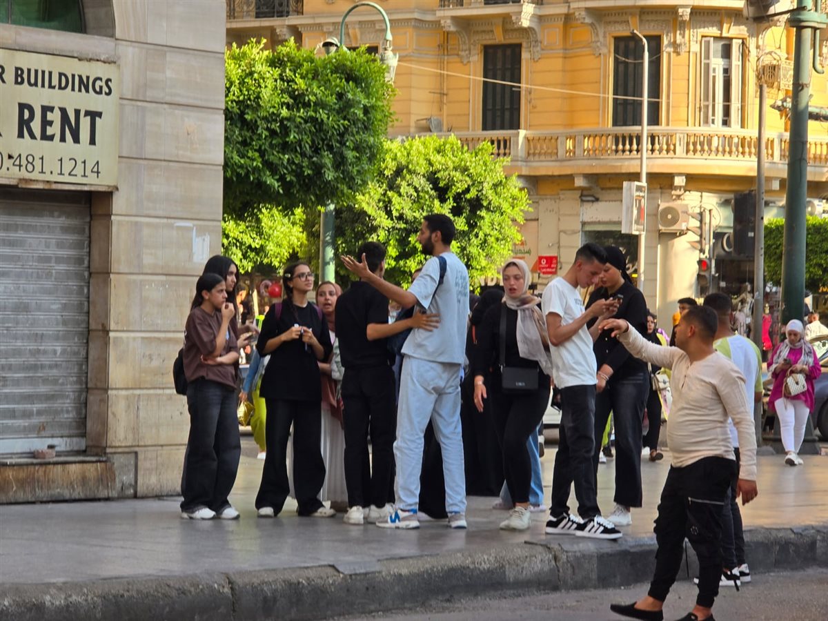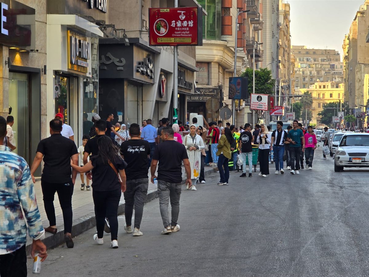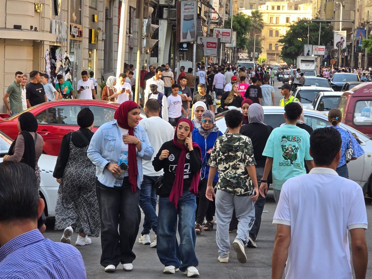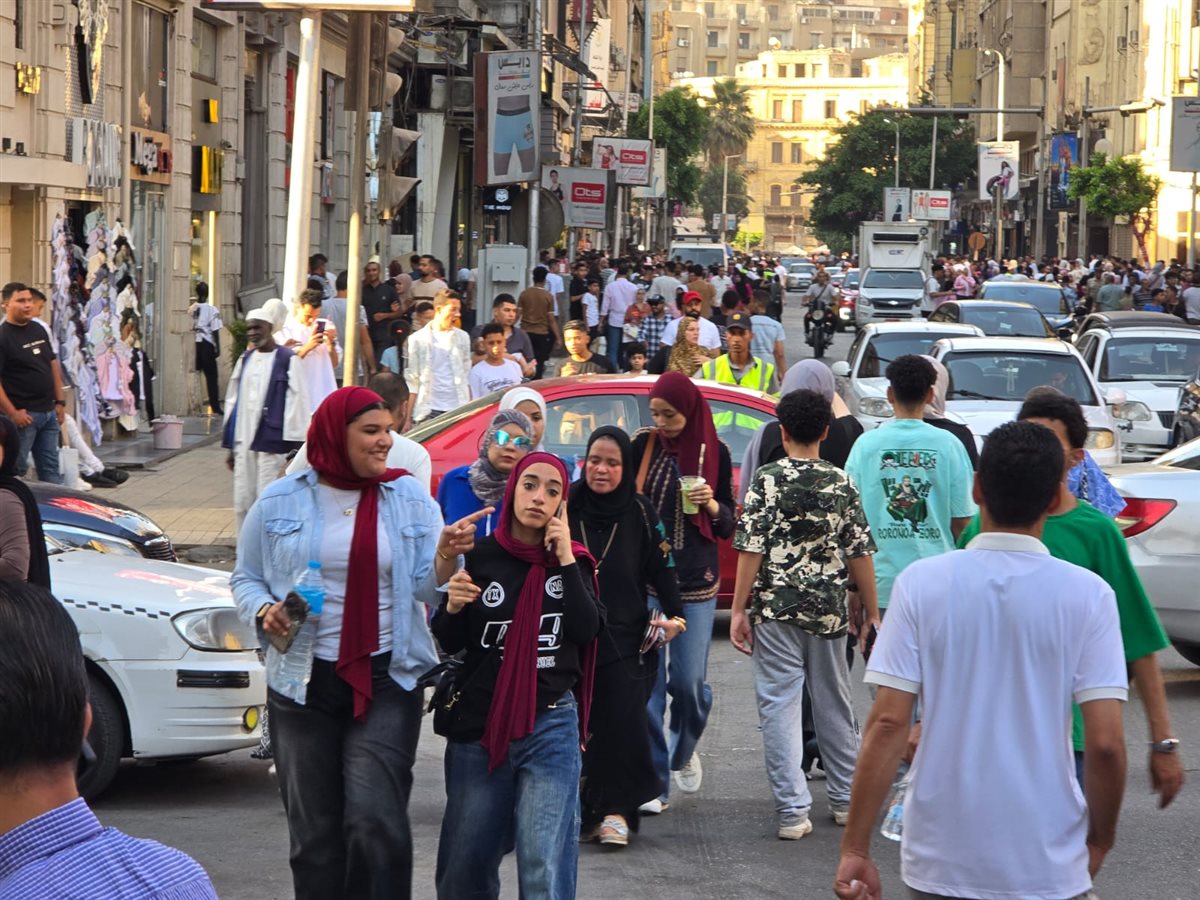 توافد عدد كبير من المواطنين على منطقة وسط البلد في القاهرة اليوم الأحد ثالث أيام عيد الأضحى المبارك، في الفترة المسائية وسط أجواء احتفالية مبهجة.