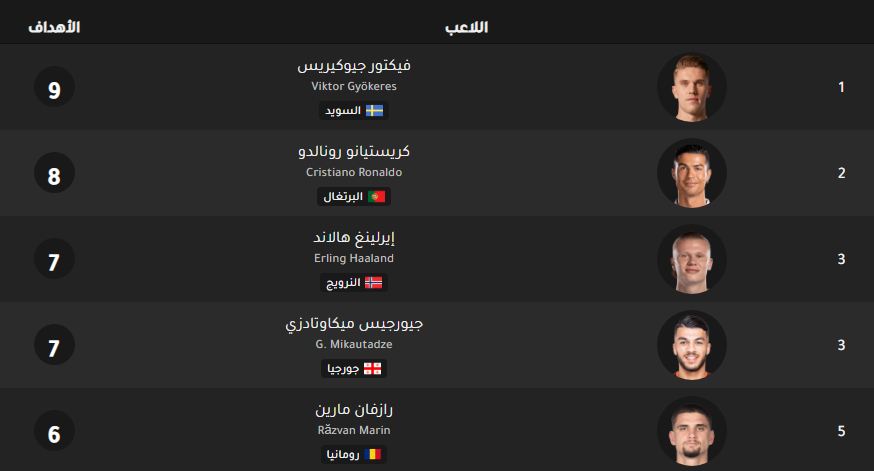 ترتيب هدافي دوري الأمم الأوروبية 2025 وموقف كريستيانو رونالدو