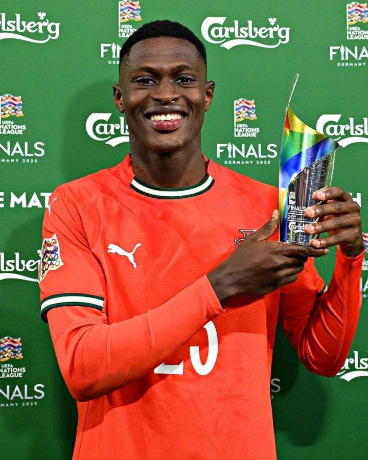 وحصد جائزة رجل مباراة نهائي دوري الأمم الأوروبية 2025 عن جدارة واستحقاق اللاعب البرتغالي نونو مينديز ظهير أيسر باريس سان جيرمان الفرنسي الذي كان بطل المشهد الأخير في البطولة القارية.