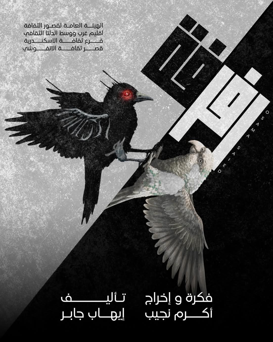 العرض تجربة نوعية لقصر ثقافة الأنفوشي، تأليف إيهاب جابر، فكرة وإخراج أكرم نجيب.