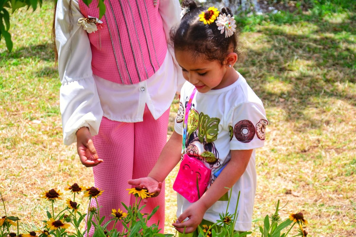شهدت حديقة الأزهر في القاهرة فرحة وسعادة الأطفال بجمال الحديقة، وما تحتويه من مناظر طبيعية رائعة وألوان زاهية، وقد أفلتت طفلة من يدي والديها واتجهت نحو الزهور، حيث بدأت تلعب بالورود وتزين شعرها بأنواع مختلفة من الزهور احتفالًا بالعيد.