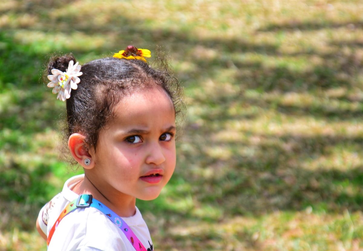 ورصدت عدسة "فيتو" الطفلة وهي تزين شعرها بالورود داخل حديقة الأزهر.