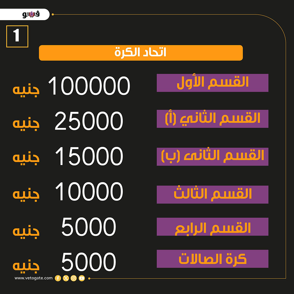 رسوم الاشتراك في مسابقات اتحاد الكرة موسم 2025-2026 (إنفوجراف)