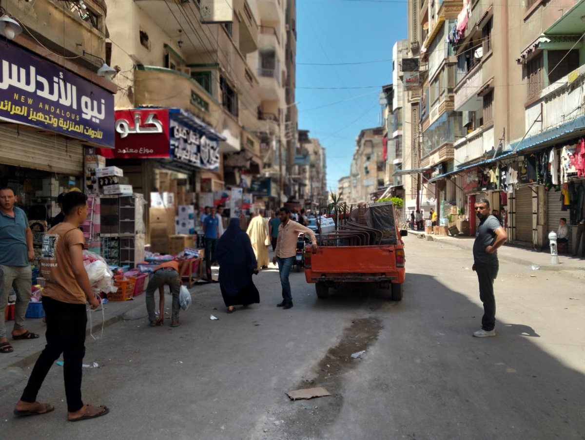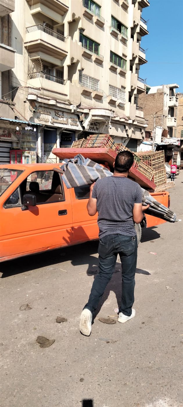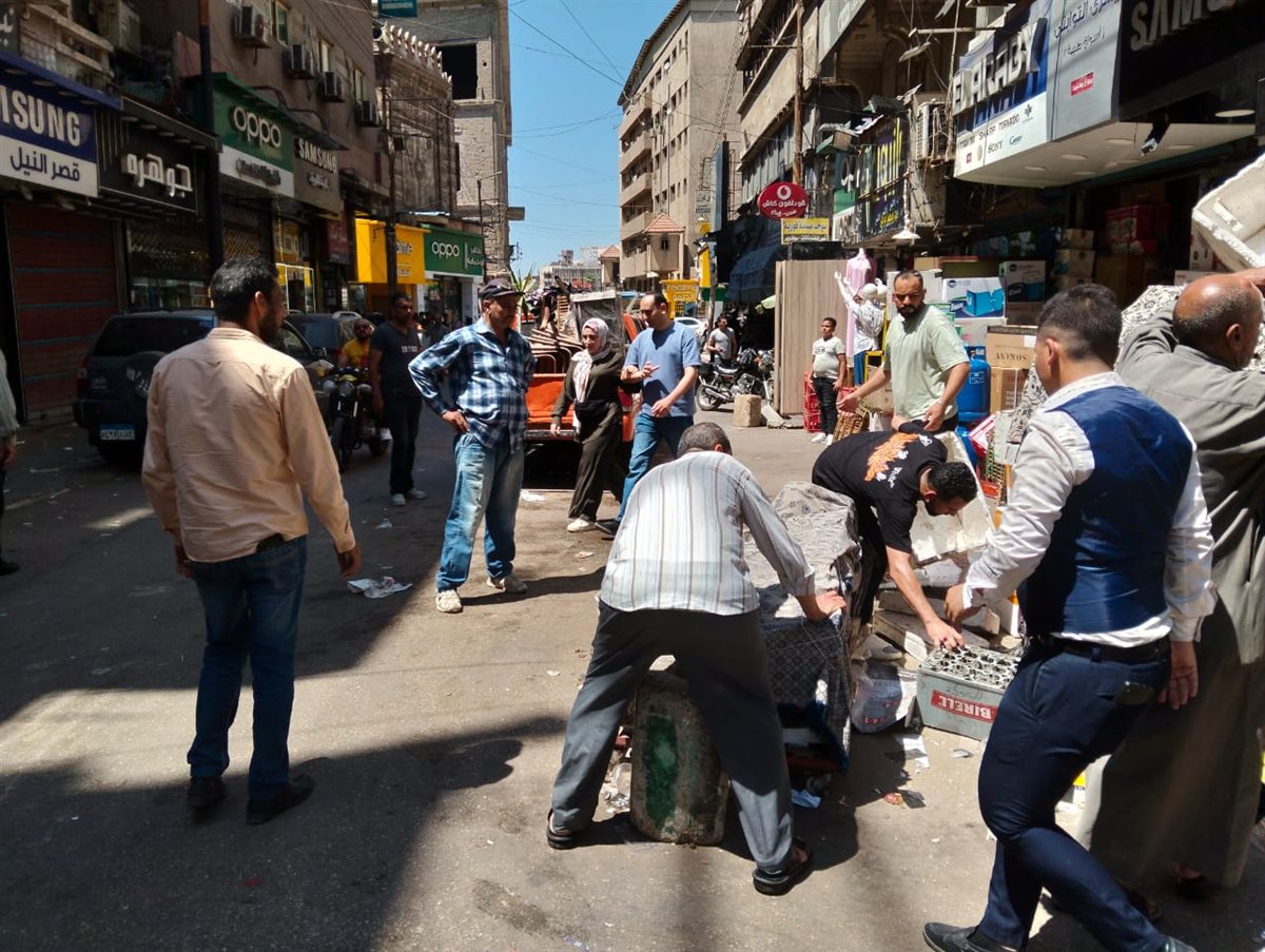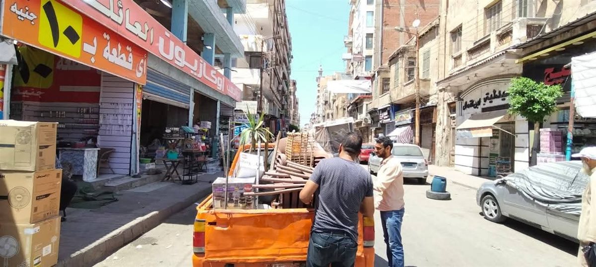 حملة لرفع الإشغالات والتعديات على حرم الشارع بحي غرب المنصورة