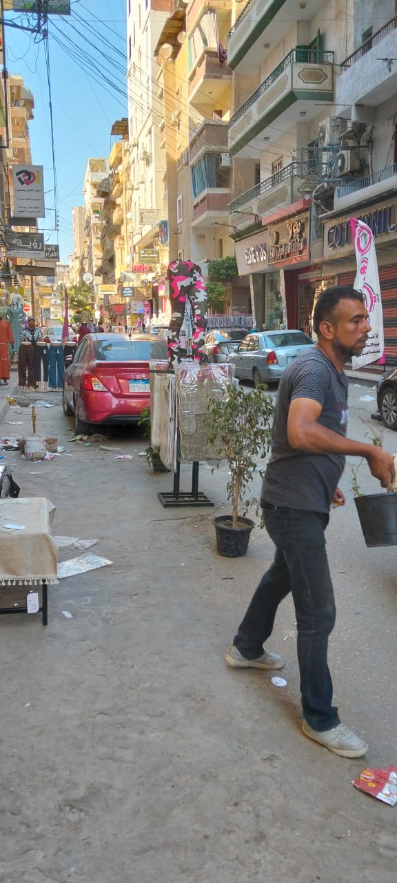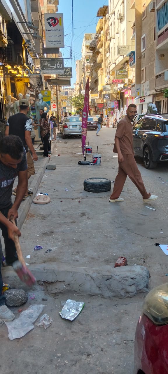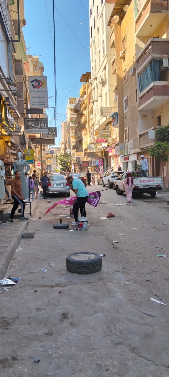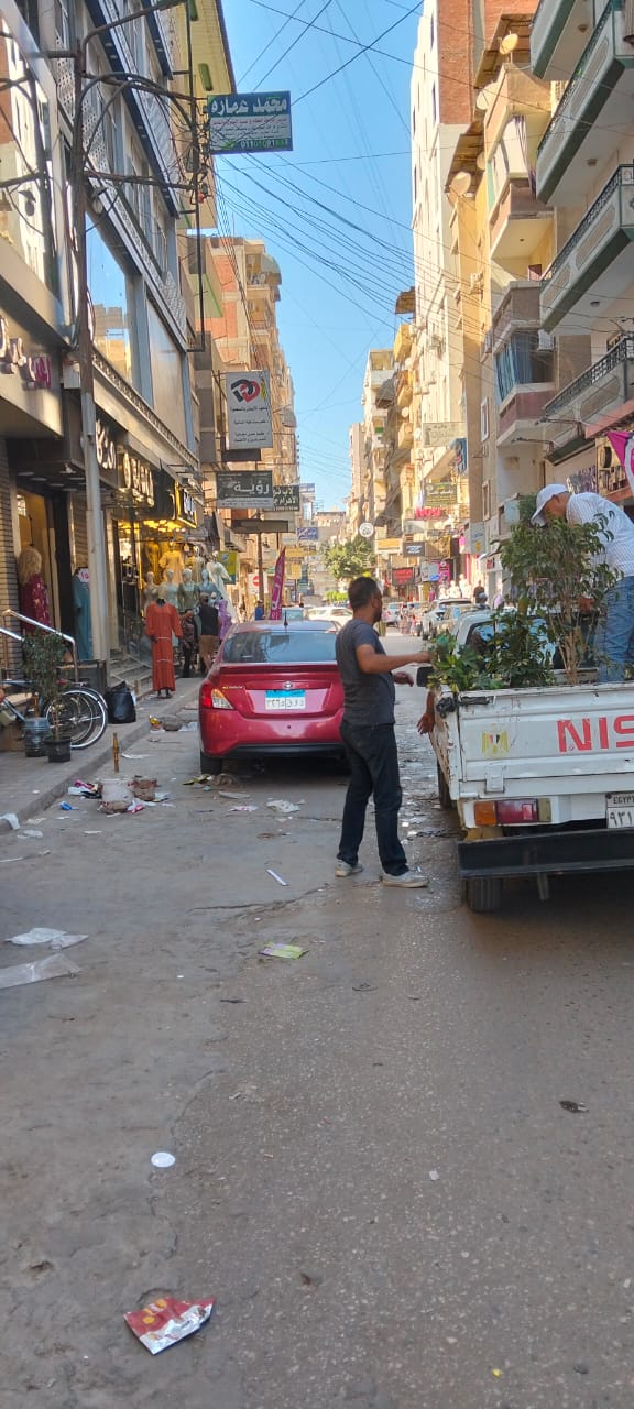 حملة لرفع الإشغالات والتعديات على حرم الشارع بحي غرب المنصورة
