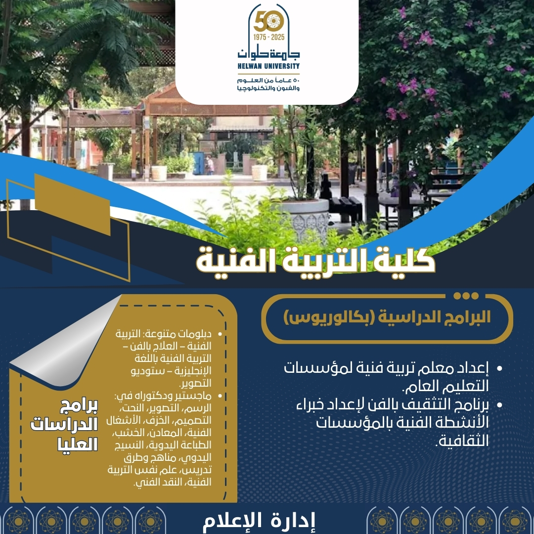 تُعد كلية التربية الفنية بجامعة حلوان واحدة من أعرق المؤسسات التعليمية المتخصصة في إعداد معلمي التربية الفنية على المستويين المحلي والإقليمي، إذ تجمع بين التاريخ العريق والتطور الأكاديمي المستمر.