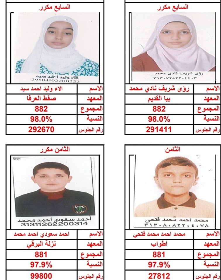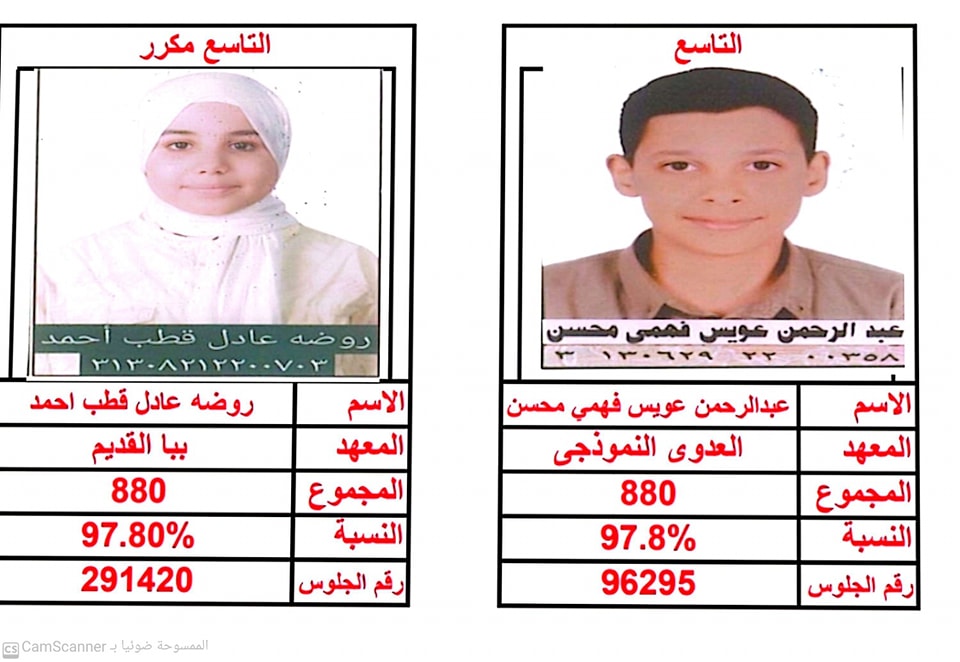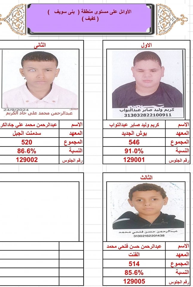 أسماء أوائل الشهادتين الابتدائية والإعدادية الأزهرية ببني سويف
