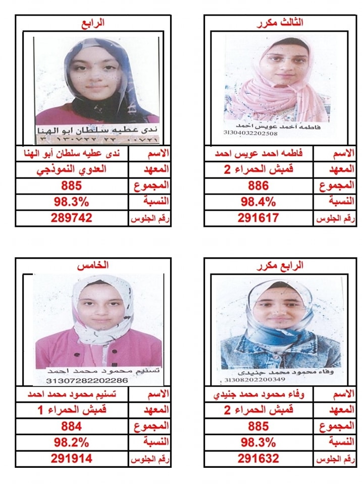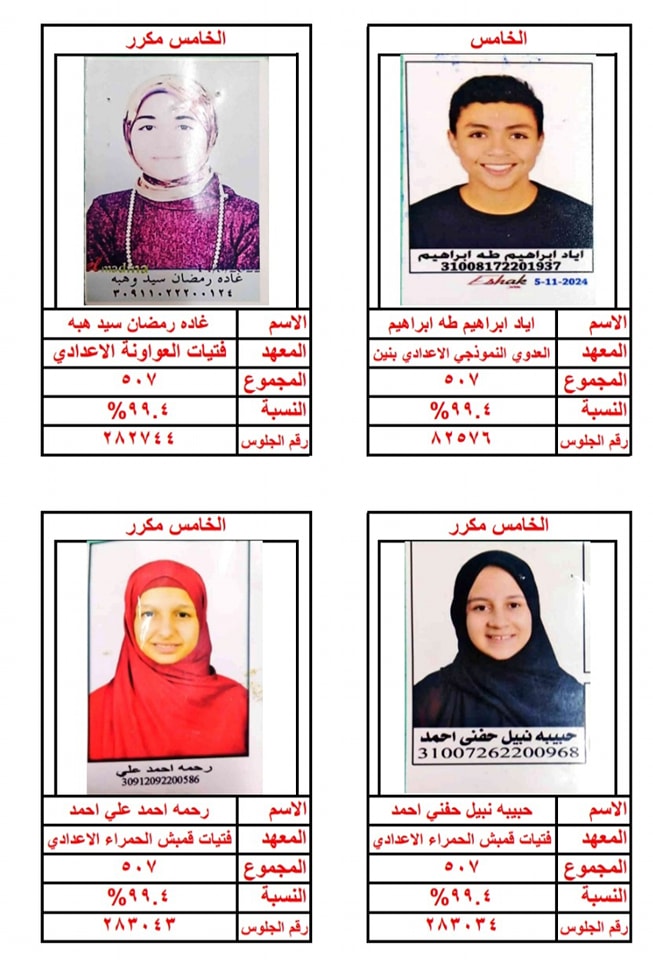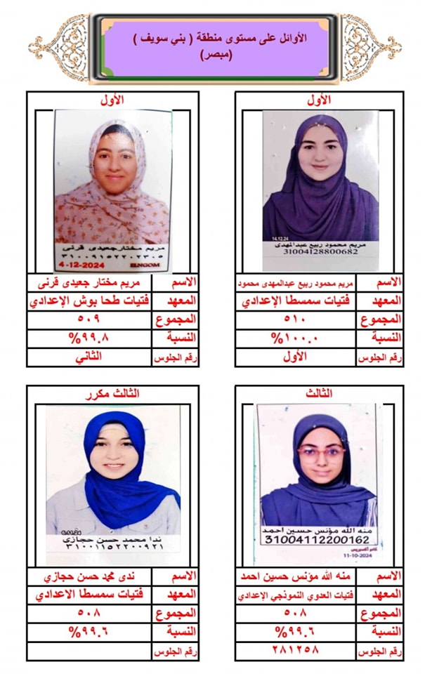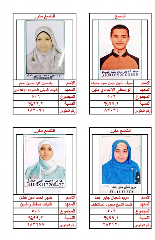 اسماء اوائل الشهادة الإعدادية الأزهرية ببني سويف