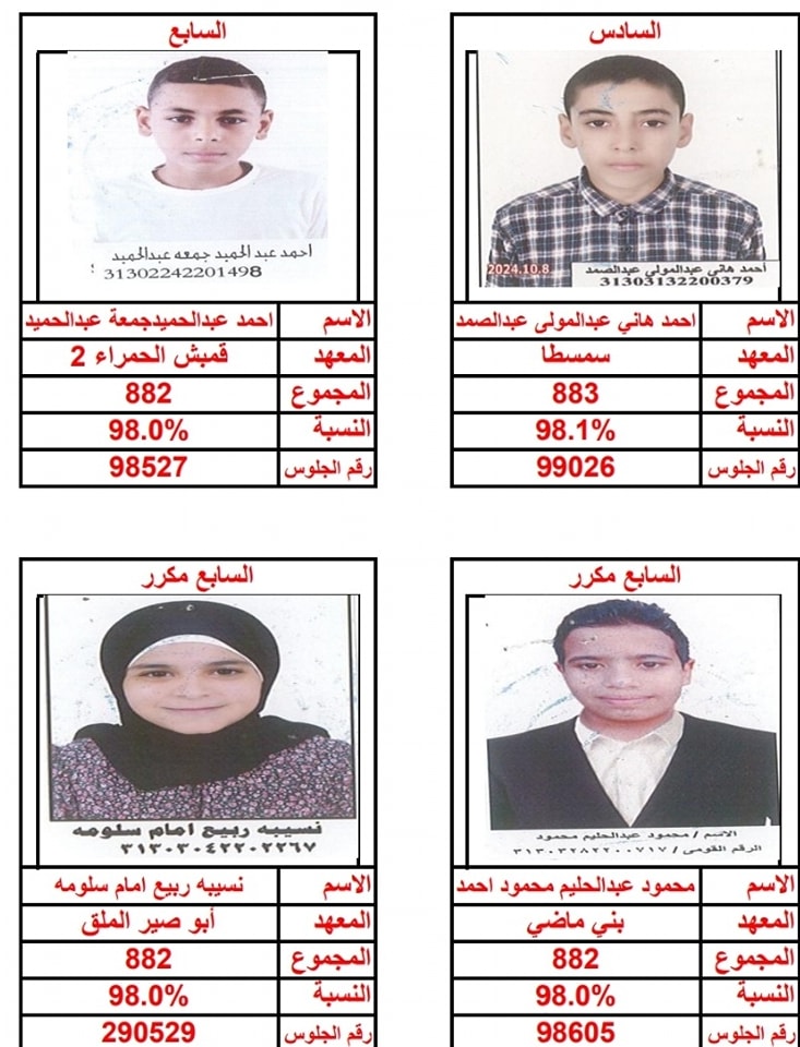 أسماء أوائل الشهادة الإبتدائية الأزهرية ببني سويف