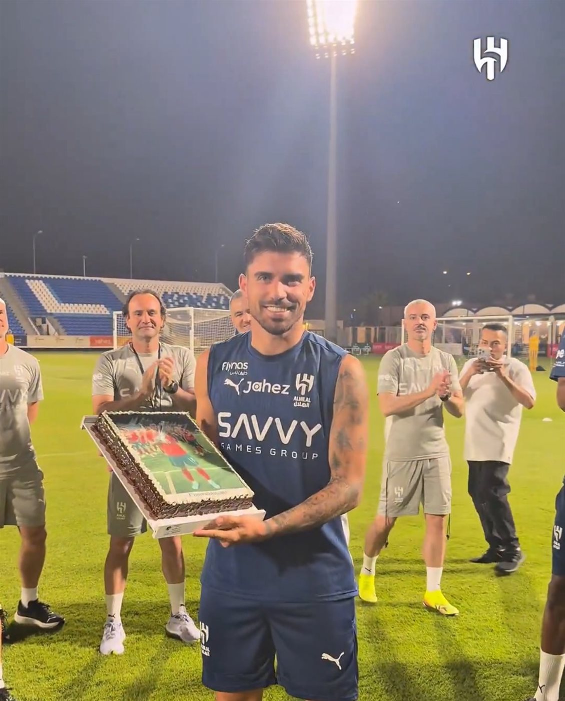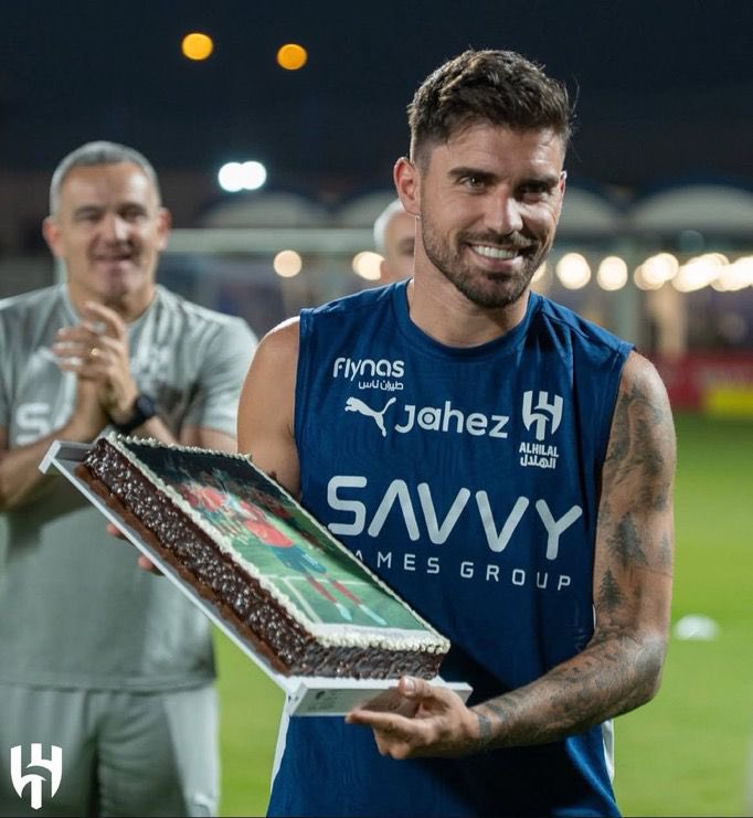 وحرص لاعبو الهلال على الاحتفال بزميلهم بعد انضمامه اليوم إلى تدريبات الهلال السعودي استعدادا للمشاركة في كأس العالم للأندية.