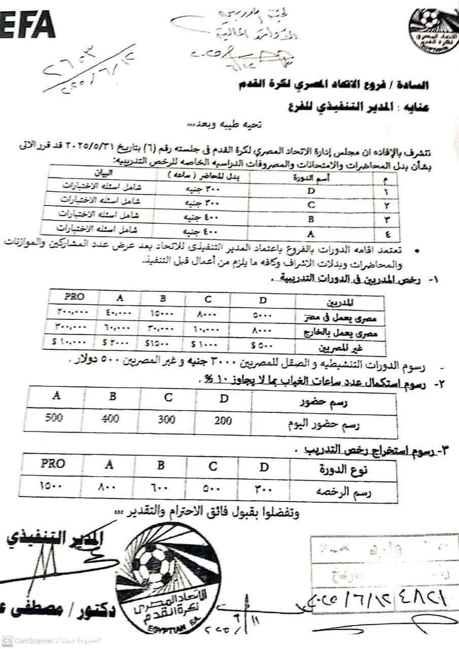 اعتمد مجلس إدارة اتحاد الكرة أسعار الاشتراك في الرخصة الأفريقية للمدربين 2025 في مصر سواء للمصريين العاملين داخل مصر أو الخارج أو الأجانب من غير المصريين.