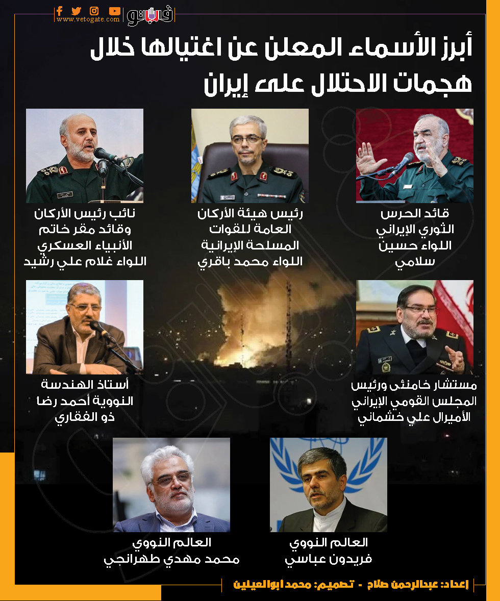أبرز الأسماء المعلن عن اغتيالها خلال هجمات الاحتلال على إيران (إنفوجراف)