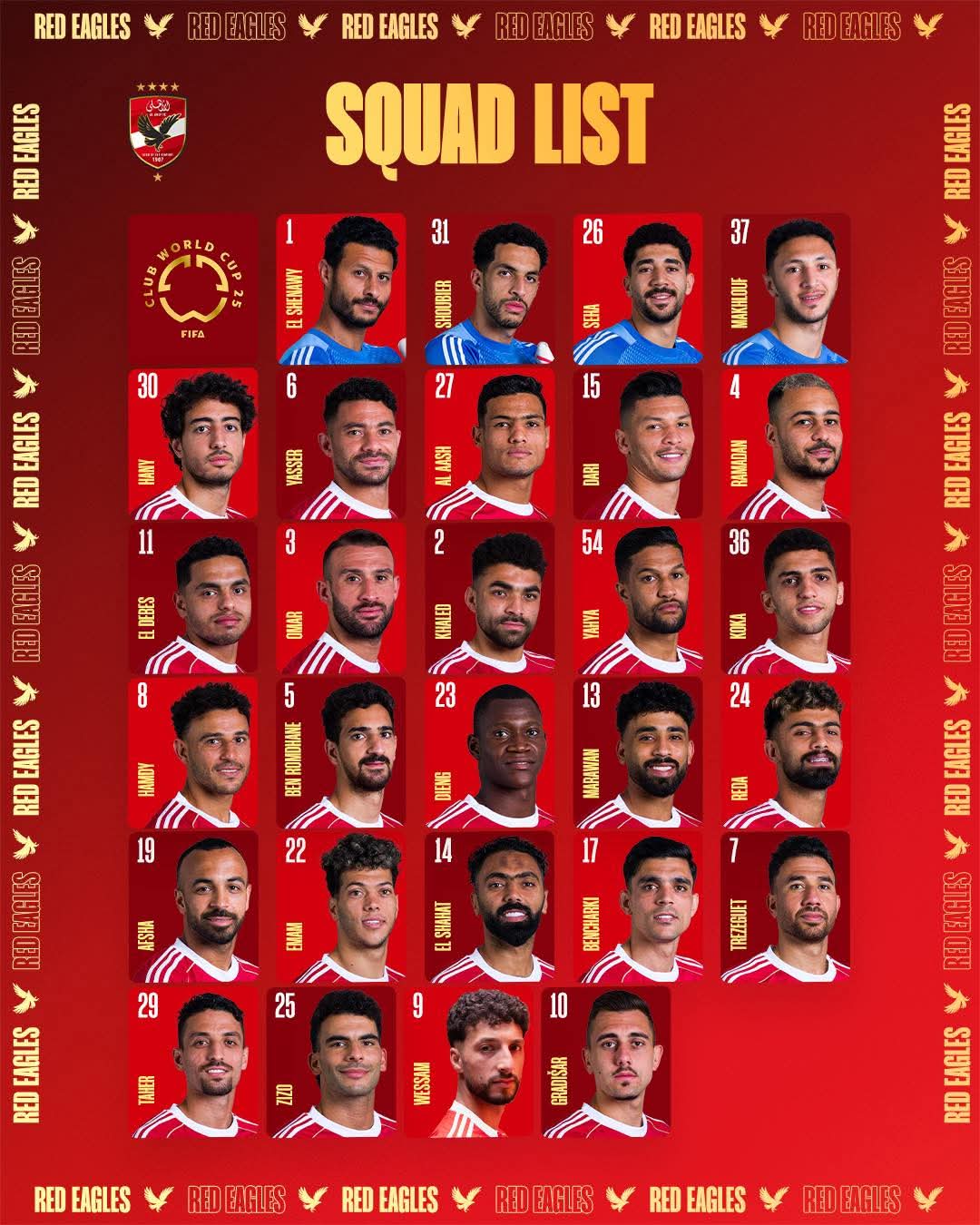 تعرف على قائمة الأهلي الرسمية في مونديال الأندية