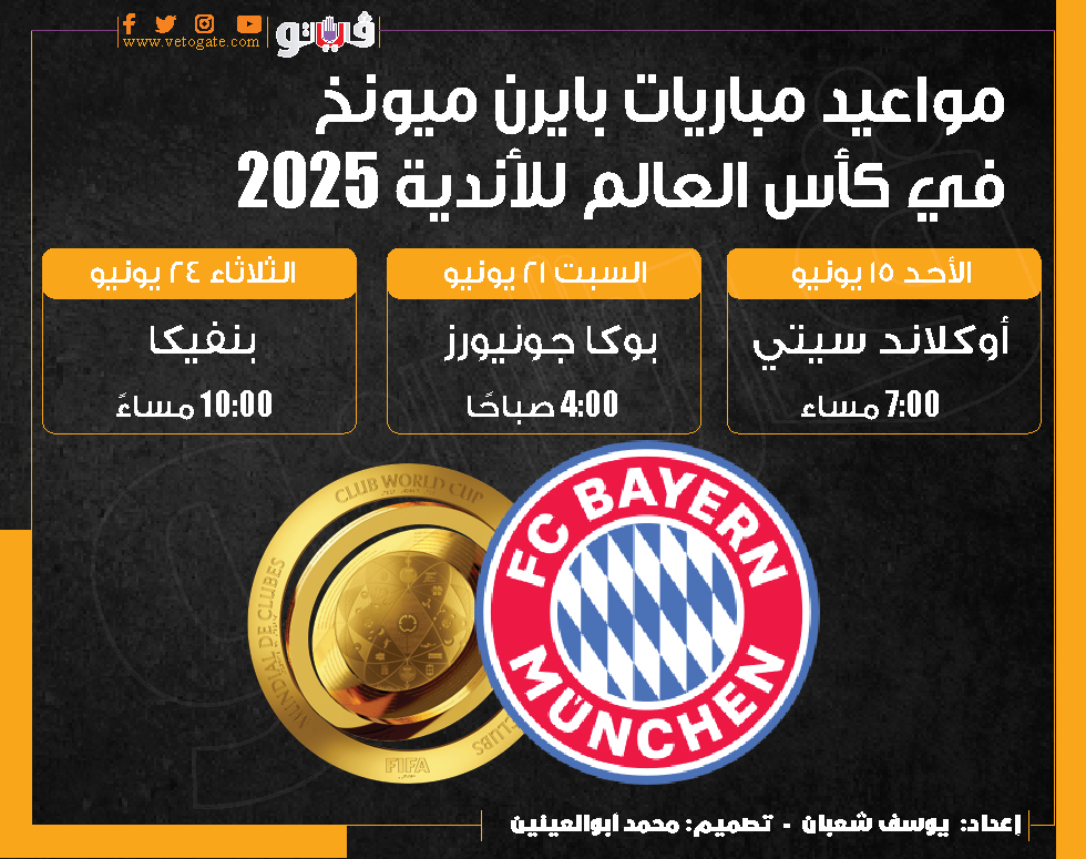 مواعيد مباريات بايرن ميونخ في كأس العالم للأندية 2025 (إنفوجراف)