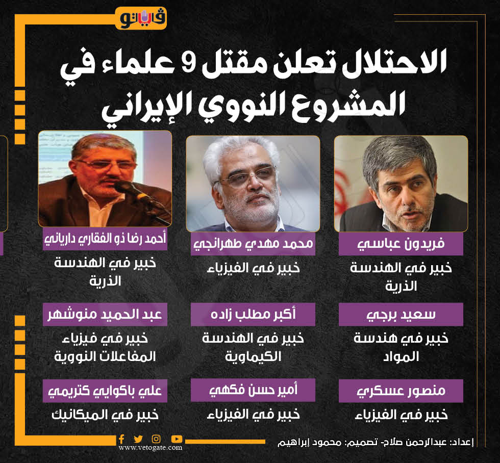 الاحتلال تعلن مقتل 9 علماء في المشروع النووي الإيراني (إنفوجراف)