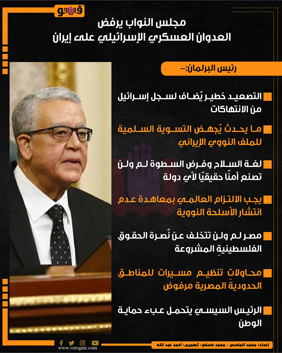مجلس النواب يرفض العدوان العسكري الإسرائيلي على إيران (إنفوجراف)