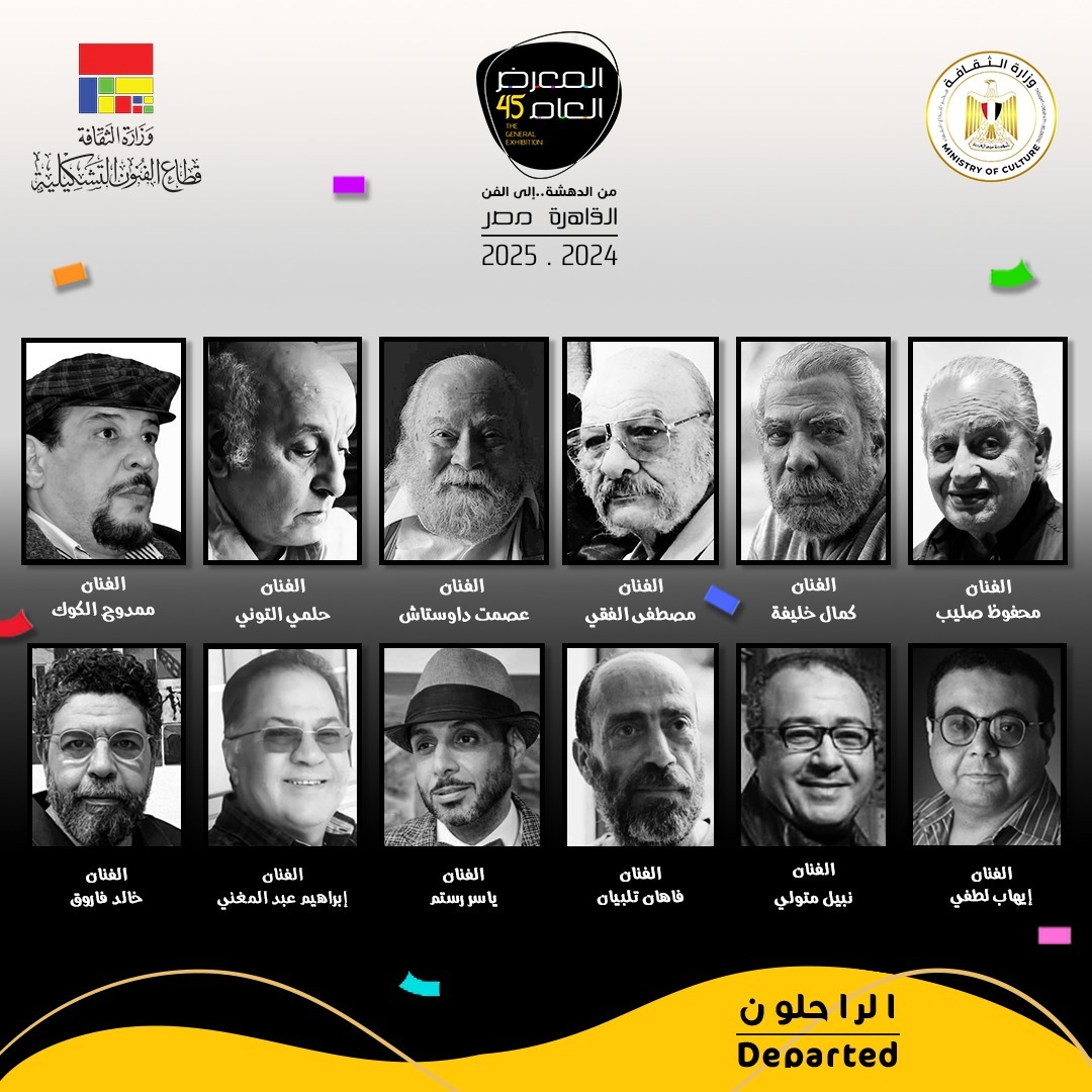 كما يخلد المعرض ذكرى 12 فنانًا رحلوا بأجسادهم منذ الدورة الماضية، لكن سيرتهم وإبداعاتهم ستظل حاضرة، وهم: محفوظ صليب، كمال خليفة، إبراهيم عبد المغني، ممدوح الكوك، فاهان تلبيان، حلمي التوني، نبيل متولي، إيهاب لطفي، ياسر رستم، خالد فاروق، مصطفى الفقي، وعصمت داوستاشي.