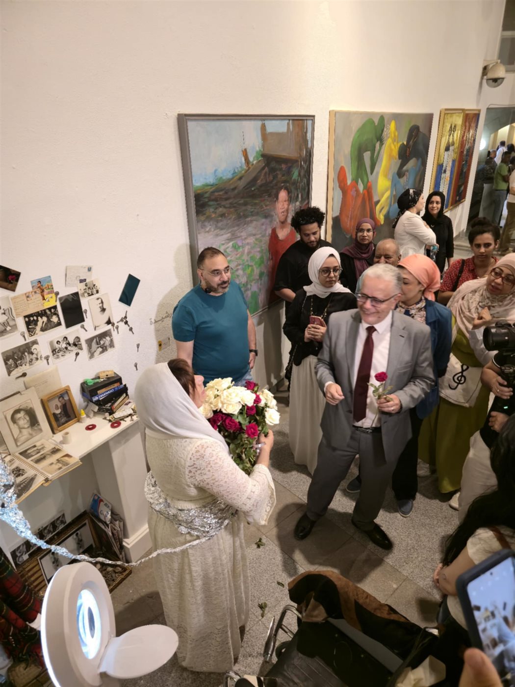 ولم يقتصر العرض على الأداء التمثيلي المؤثر، بل قامت سما إبراهيم بتوزيع الورود على الجمهور، لتتحول قاعة المعرض العام إلى بستان نابض بالأحمر والأبيض.