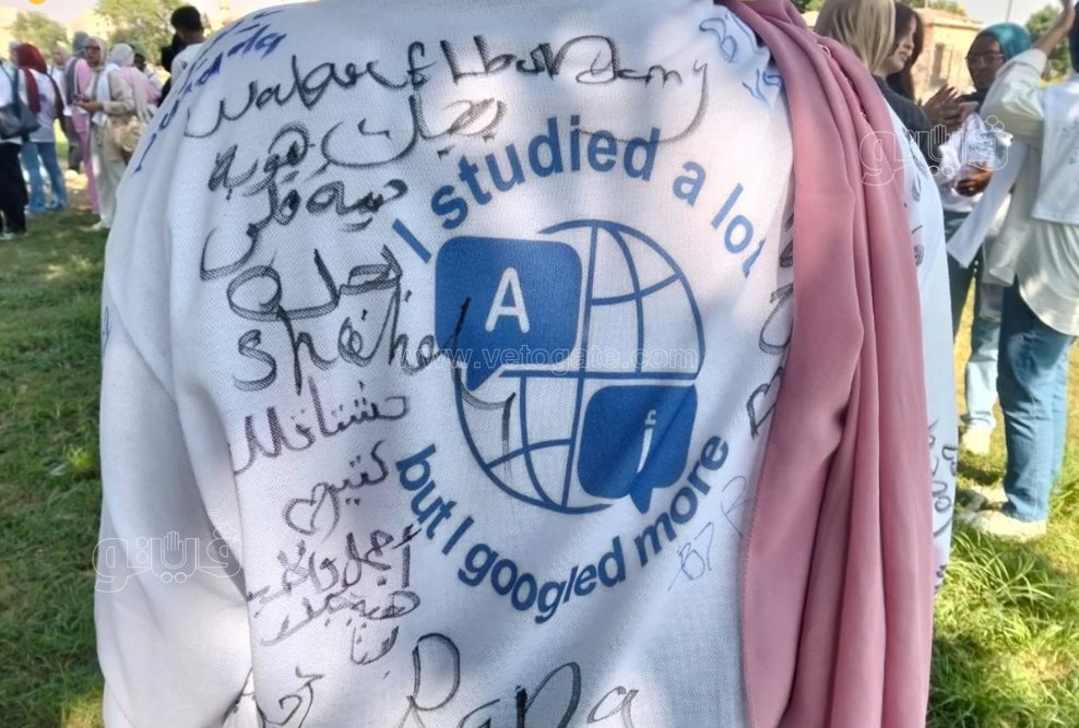 أما طلاب البرامج المميزة بكلية التجارة بـجامعة قناة السويس، فابتكروا طريقة جديدة للاحتفال برزت في ارتداء تيشرتات بيضاء والتوقيع عليها بأقلام ملونة لا يمكن محوها.