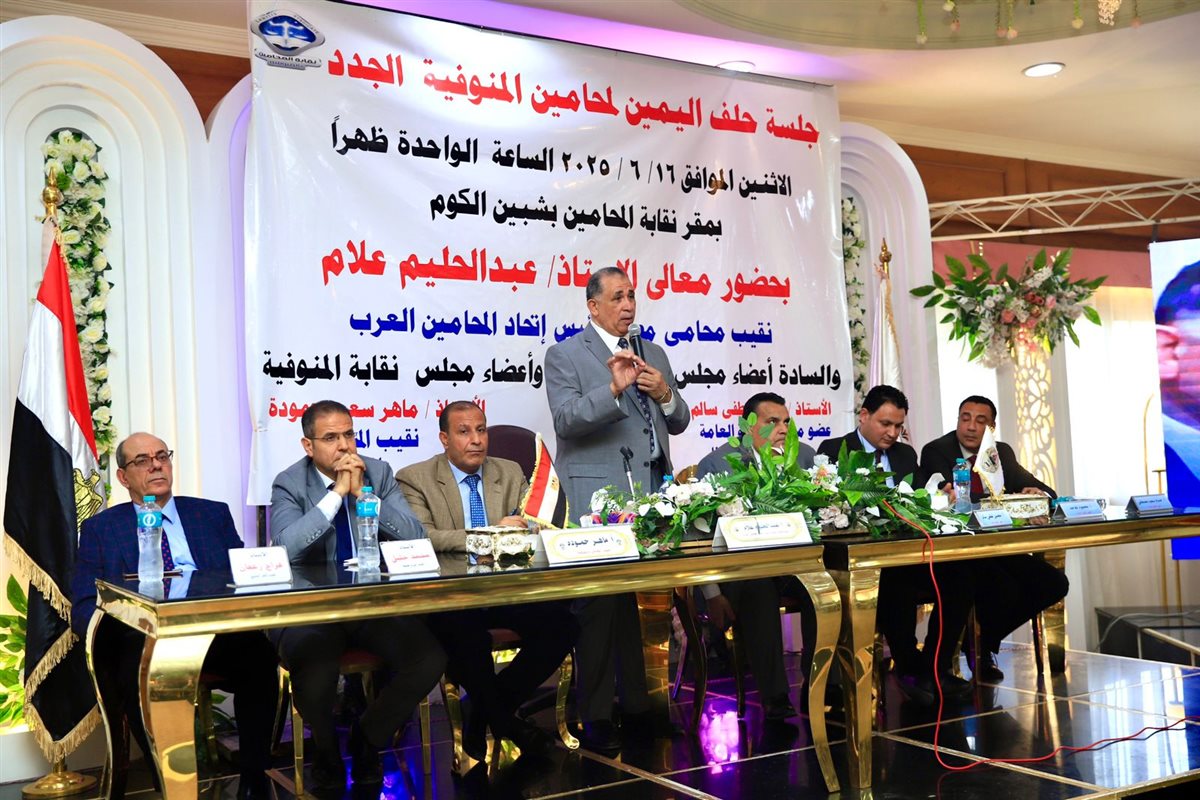 ترأس عبد الحليم علام، نقيب المحامين ـ رئيس اتحاد المحامين العرب، جلسة حلف اليمين القانونية للأعضاء الجدد بنقابة المنوفية، وذلك بمقر النقابة الفرعية بشبين الكوم.