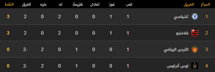 وجمعت افتتاحية المجموعة الرابعة بين تشيلسي ولوس أنجلوس الأمريكي، وجاءت النتيجة لصالح أسود لندن بهدفين نظيفين، ليوجهوا رسالة قوية لرفقاء المجموعة بأنهم الأقرب للعبور للدور التالي.