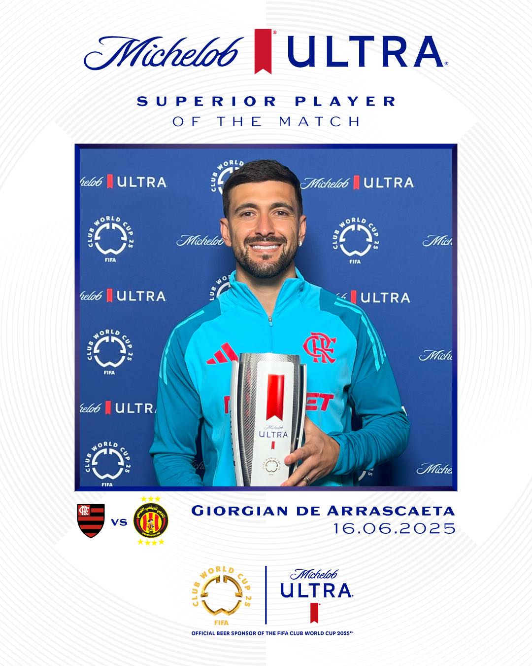 كأس العالم للأندية، اختير جيورجيان دي أراسكايتا مهاجم فلامنجو البرازيلي، رجل مباراة فريقه أمام الترجي التونسي في افتتاح مشوار الفريق البرازيلي في كأس العالم للأندية 2025.