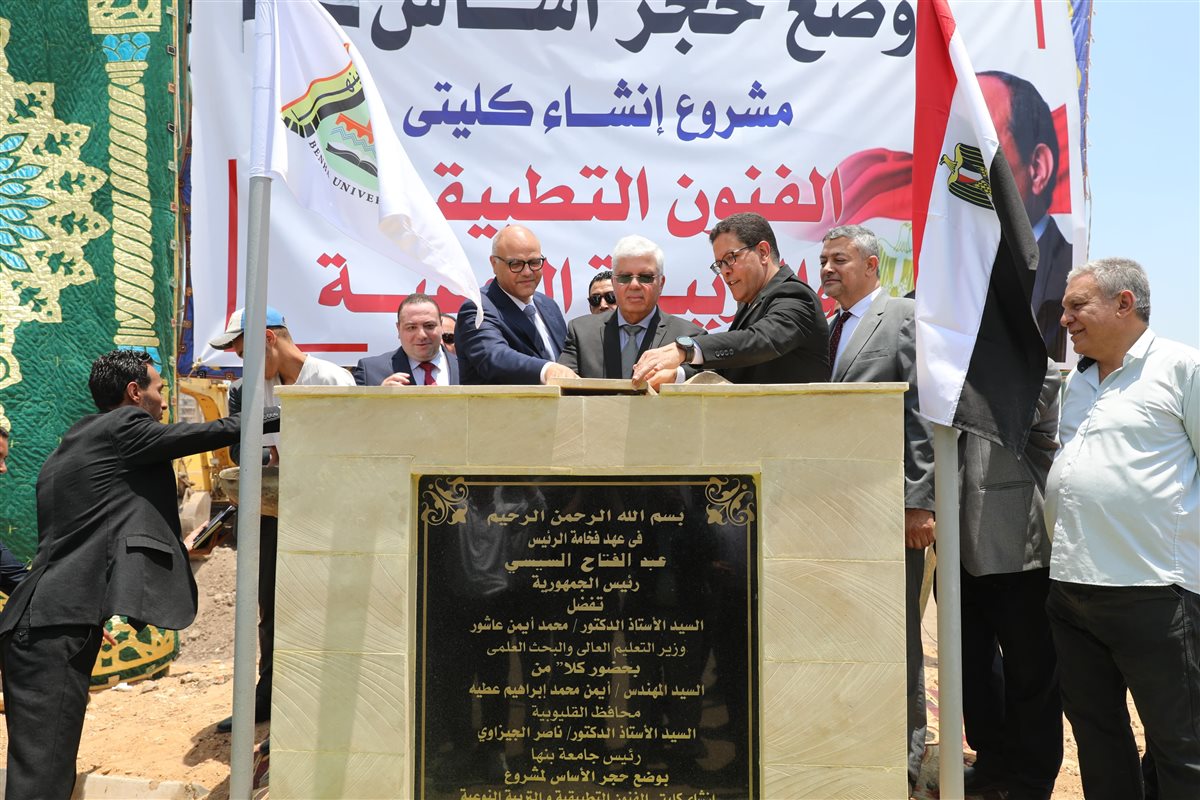كما قام الوزير بوضع حجر الأساس لمشروع إنشاء مبنى كليتي الفنون التطبيقية والتربية النوعية، والذي يتكون من 3 مبانٍ متجاورة، بمسطح 8200 متر مربع لكل دور، وارتفاع أرضي، و6 أدوار، ويحتوي المبنى على 12 مدرجًا بسعة 200 طالب لكل مدرج، و9 مدرجات بسعة 100 طالب، إلى جانب 20 ورشة متنوعة، و40 معملًا متنوعًا ومرسمًا، وقاعة عرض، ومكتبة، وعيادة طبية، كما يضم المبنى قاعات لتدريس الدروس العملية، ومكاتب لأعضاء هيئة التدريس، مع مراعاة تطبيق شروط الإتاحة لذوي الاحتياجات الخاصة في تصميم المبنى، وتصل تكلفة المشروع إلى أكثر من 800 مليون جنيه، ويخدم أكثر من 30 ألف طالب، ومن المقرر أن تستغرق مدة تنفيذ المشروع 24 شهرًا.
