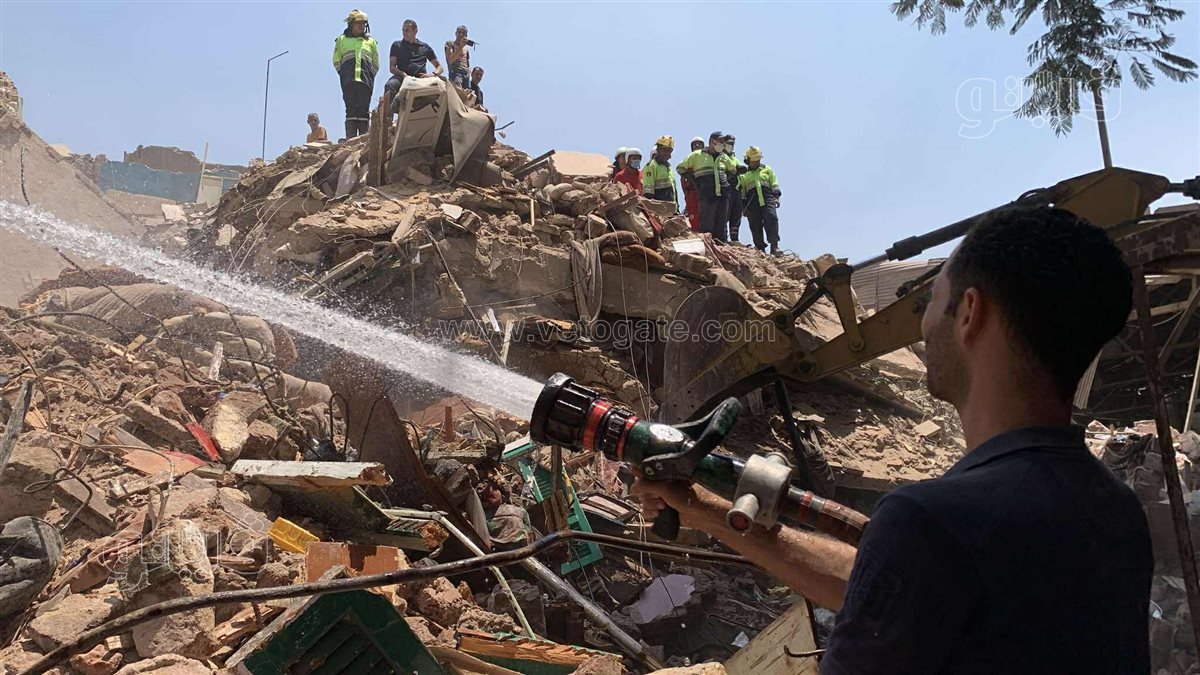 الحماية المدنية تستخدم خراطيم لتتبع أصوات الضحايا أسفل عقار السيدة زينب المنهار (فيديو)