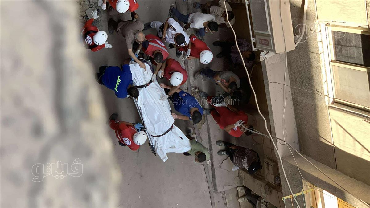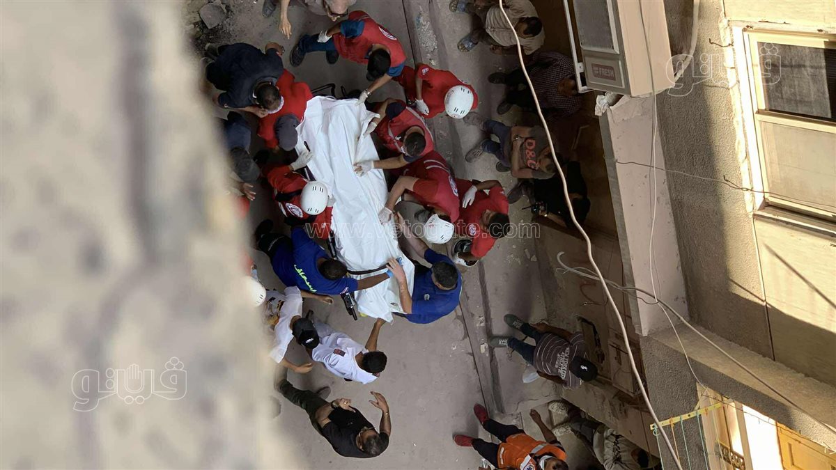 رصدت عدسة فيتو لحظة استخراج جثة ضحية من تحت أنقاض عقار السيدة زينب المنهار .