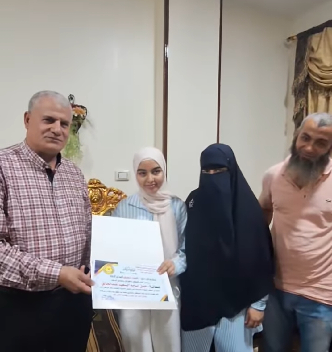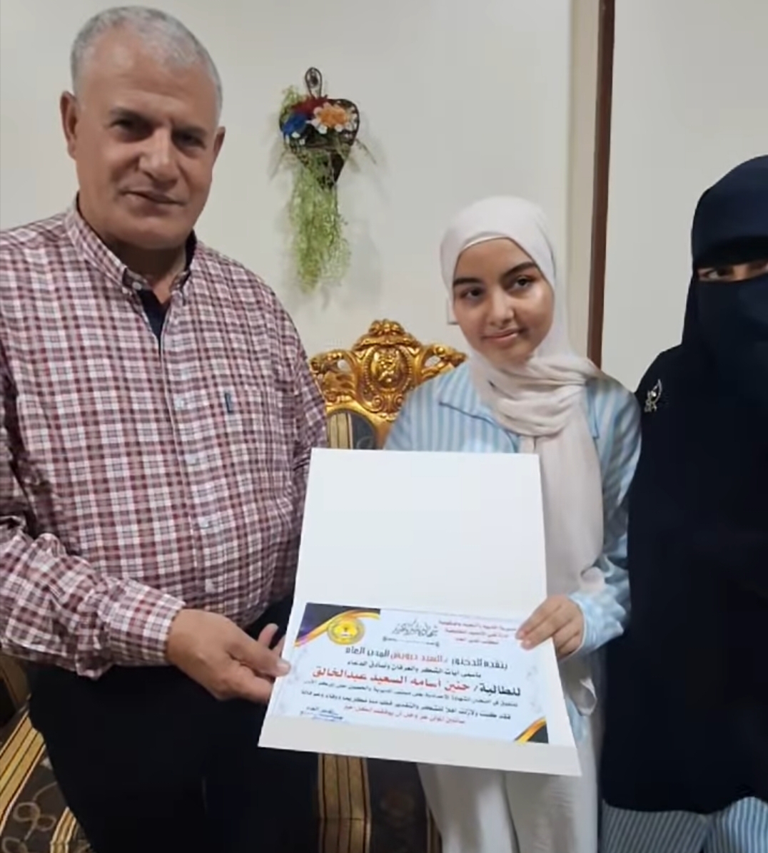 وقدم لها مدير الإدارة التعليمية نسخة من كتاب الله وشهادة تقدير نظرا لجهودها وتفوقها.
