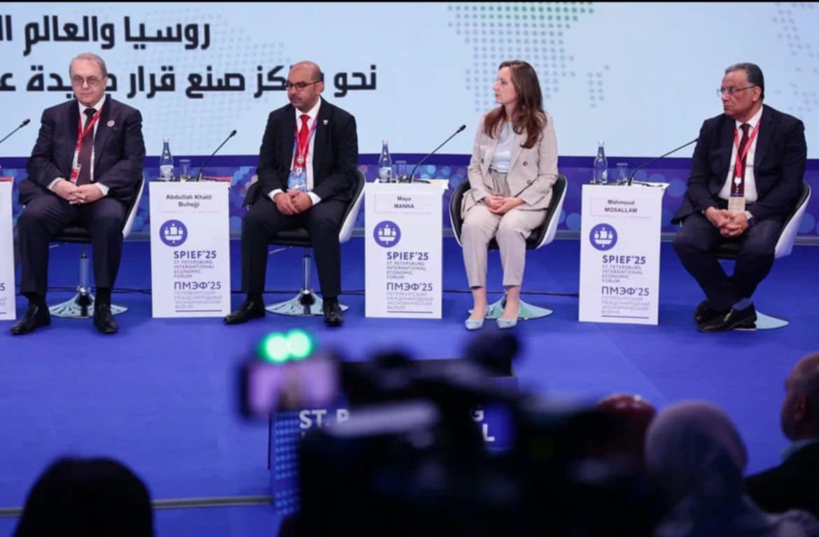 جاء هذا خلال ندوة تحت عنوان "روسيا والعالم العربي.. نحو مراكز صنع قرار جديدة على الساحة الدولية" والتي عقدت على هامش منتدى بطرسبورغ الاقتصادي الدولي، كجزء من تحضيرات قمة "روسيا - العالم العربي" والتي تنعقد في أكتوبر المقبل، شارك في الندوة عدد من السياسيين والإعلاميين الروس والعرب، على رأسهم ميخائيل بوغدانوف مبعوث الرئيس الروسي إلى الشرق الأوسط وإفريقيا، نائب وزير الخارجية الروسي، مايا مناع مديرة قناة روسيا اليوم بالعربية، عبد الرحيم النعيمي الرئيس التنفيذي لدائرة التسويق والاتصال لشبكة أبو ظبي للإعلام، عضوان الأحمري رئيس مجلس إدارة هيئة الصحفيين السعوديين، عبد الله بوحجي مدير عام وكالة الأنباء البحرينية، وأدار الندوة الإعلامي عمرو عبد الحميد مدير مركز الدراسات العربية الأوراسية.