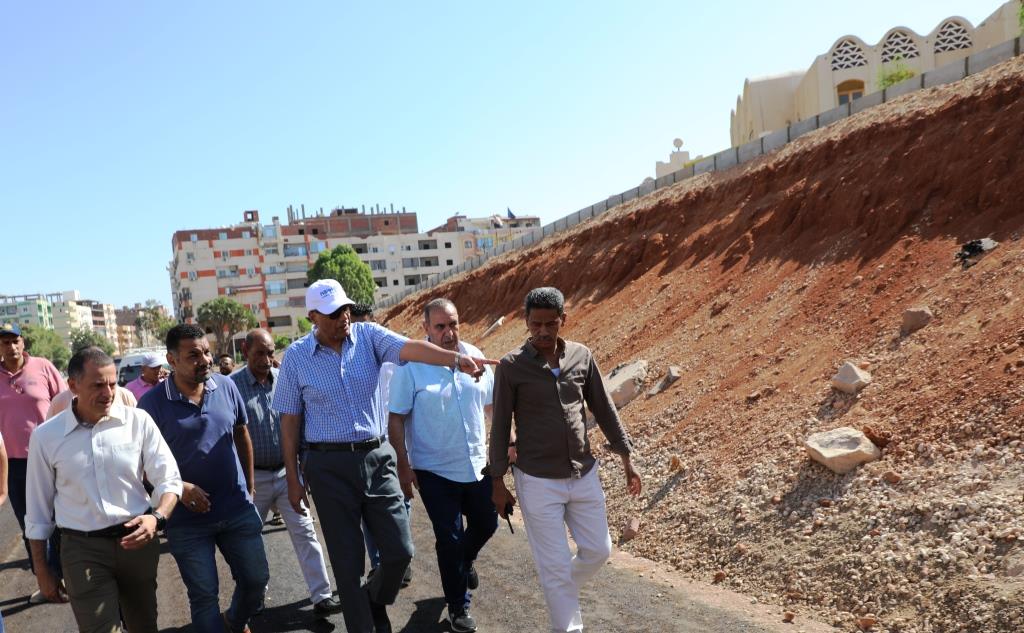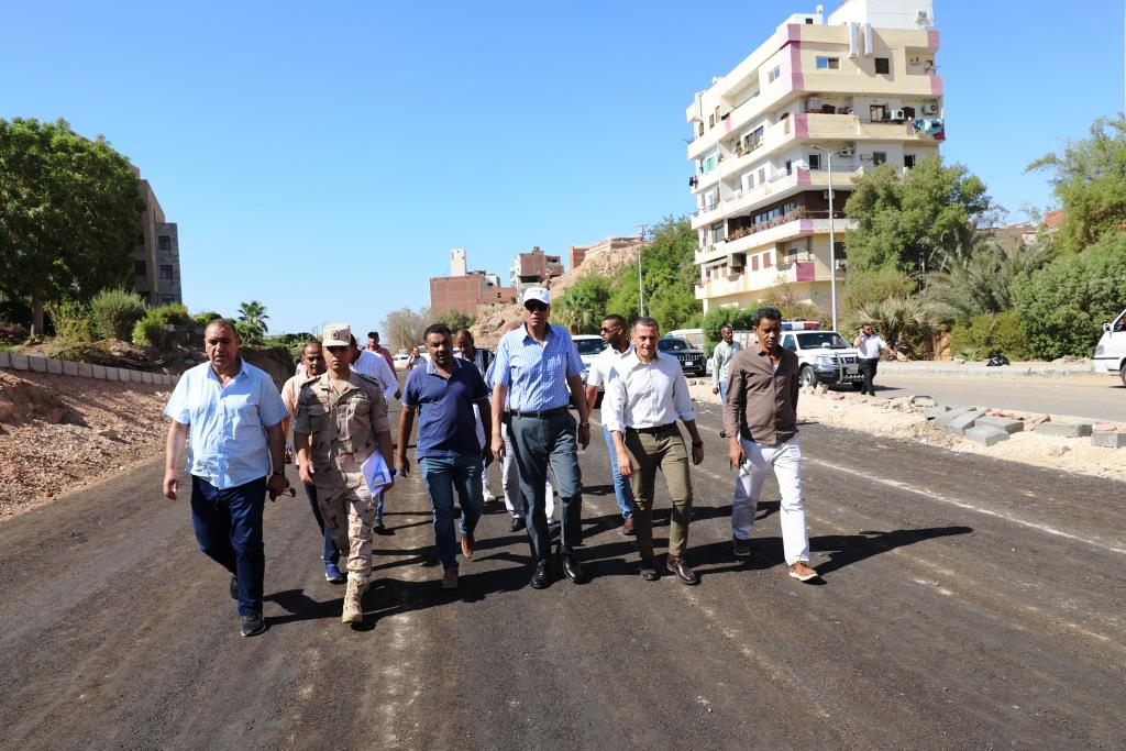 محافظ أسوان يشدد على سرعة الانتهاء من المرافق بمشروع تطوير طريق السادات (صور)