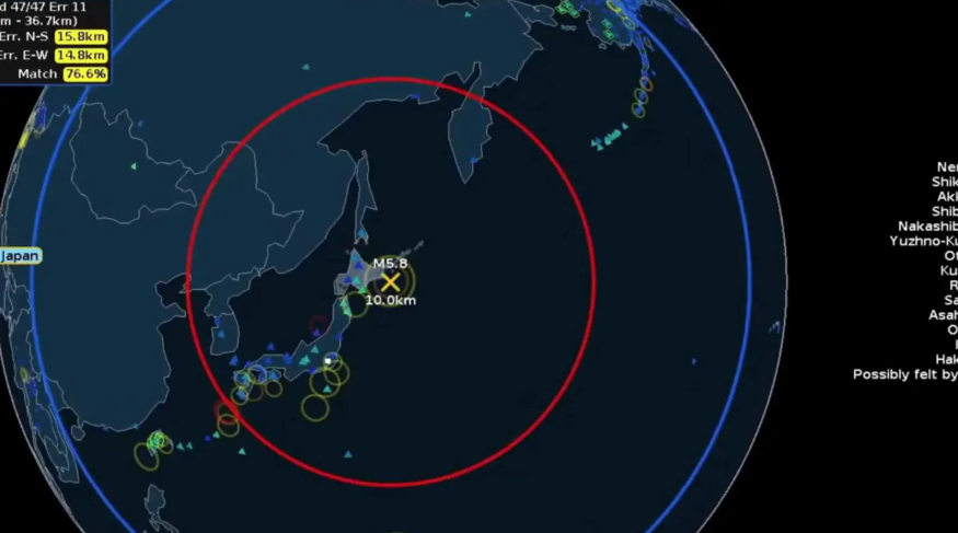 بقوة 6 درجات، زلزال يضرب ساحل هوكايدو في اليابان