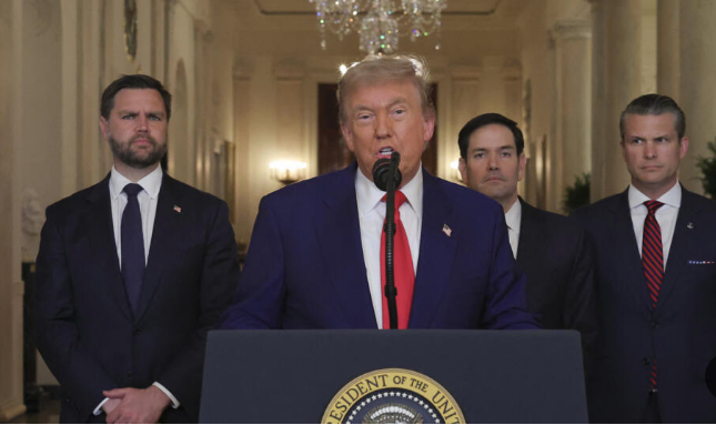 وصف ترامب عملية ضرب المفاعلات النووية الإيرانية بأنها "نجاح عسكري هائل"، مؤكدًا أن منشأة "فوردو" الإيرانية، كانت الهدف الأصعب والأكثر تحصينًا، و"قد أُبيدت تمامًا"، وأن ما قام به الجيش المريكي لا يستطيع أن يقوم به أي جيش في العالم.