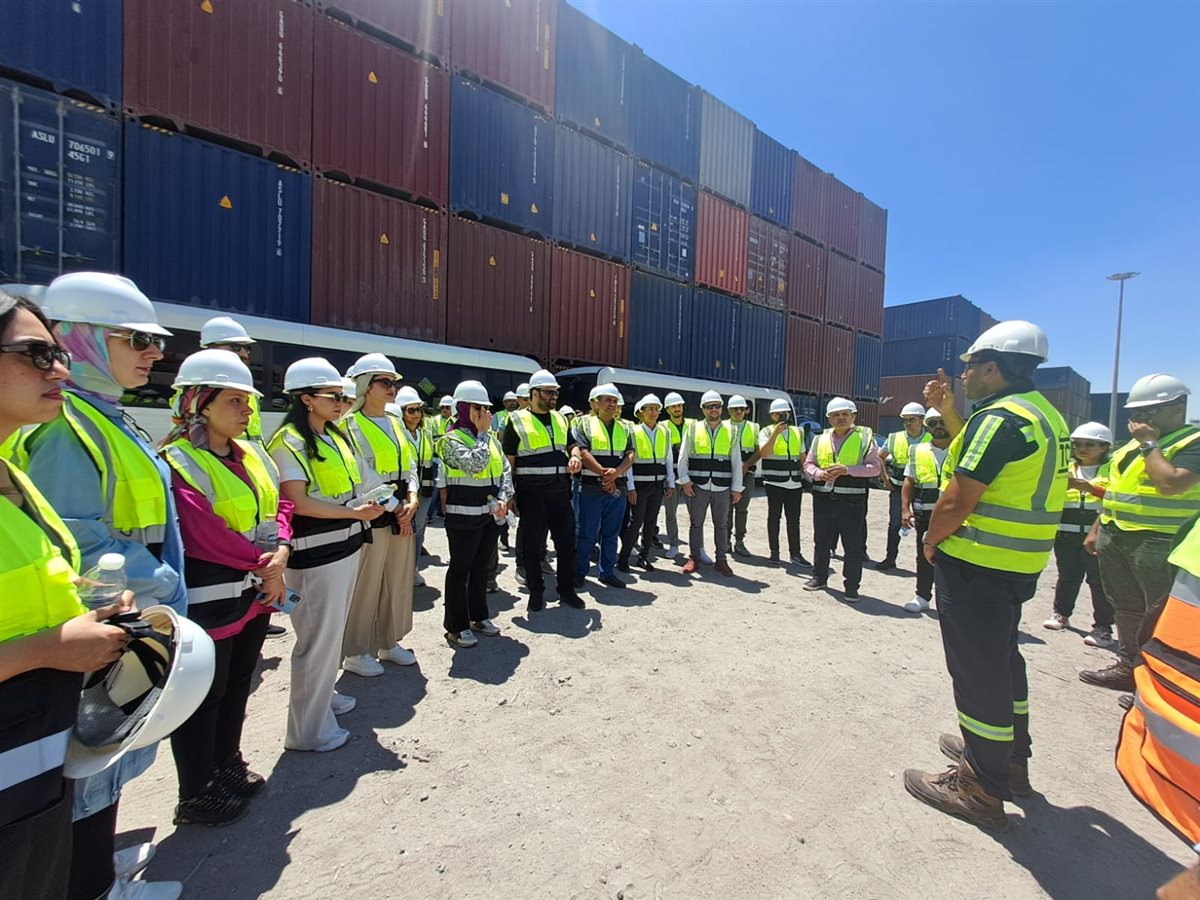 وشملت الجولة: - زيارة سفينة "Transmar Legacy" – إحدى أكبر سفن الشحن البحري المملوكة للشركة بسعة ٢١٠٠ حاوية، حيث أتيح للمشاركين التعرف عن قرب على الإمكانات التشغيلية والفنية التي توفرها الشركة- زيارة مستودعات التخزين والحاويات المبردة للتعرف بشكل مباشر على دورة العمل اللوجستي كاملة داخل الميناء من لحظة وصول البضائع وحتى تحميلها على السفن.